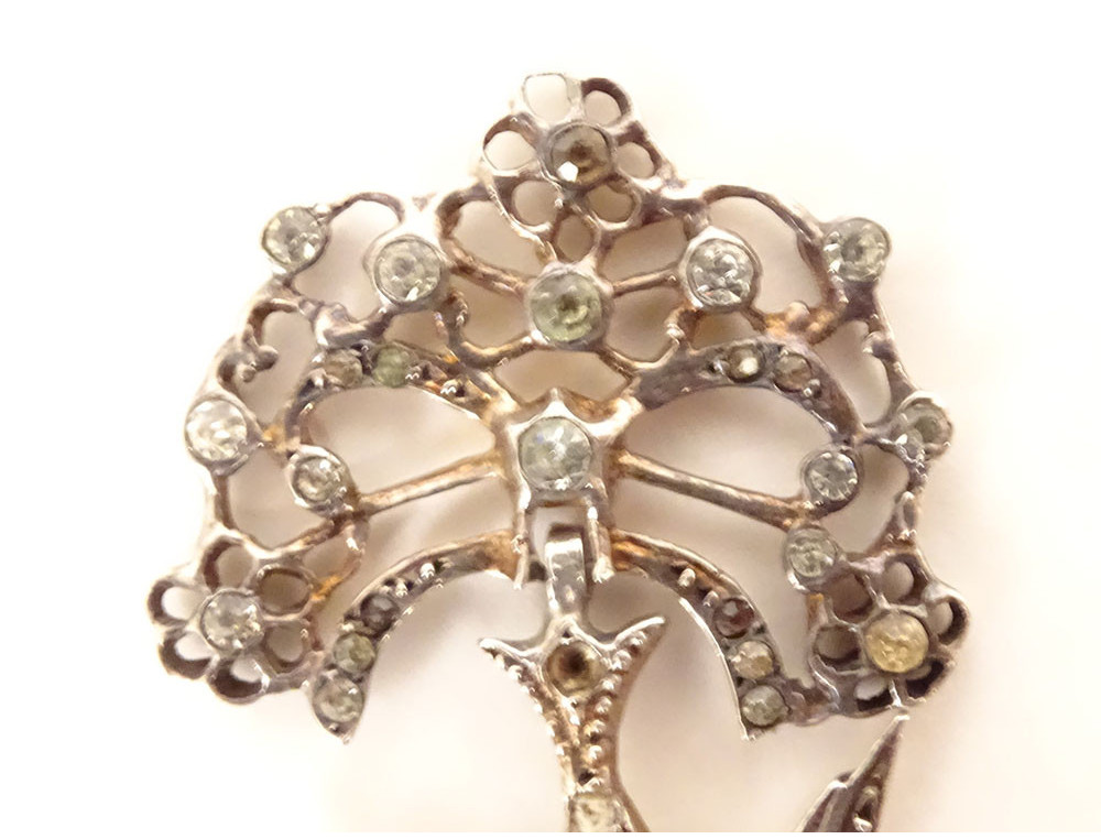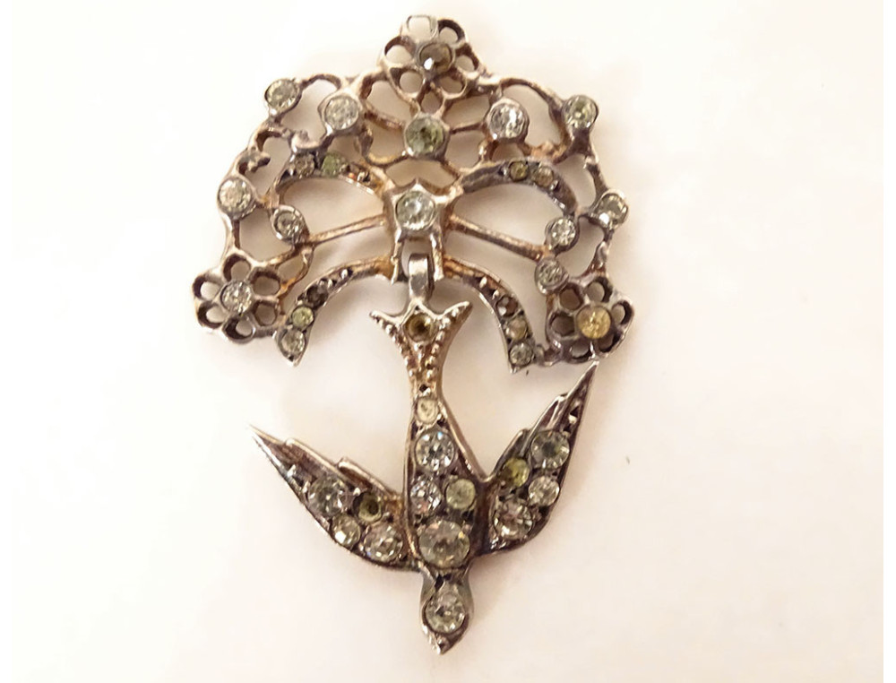 19th century Norman Holy Spirit pendant in solid silver with Rhine and dove knot stones