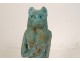 Funerary statuette or Egyptian amulet, in enameled terracotta (turquoise color), representing the standing goddess Bastet, from private collection.