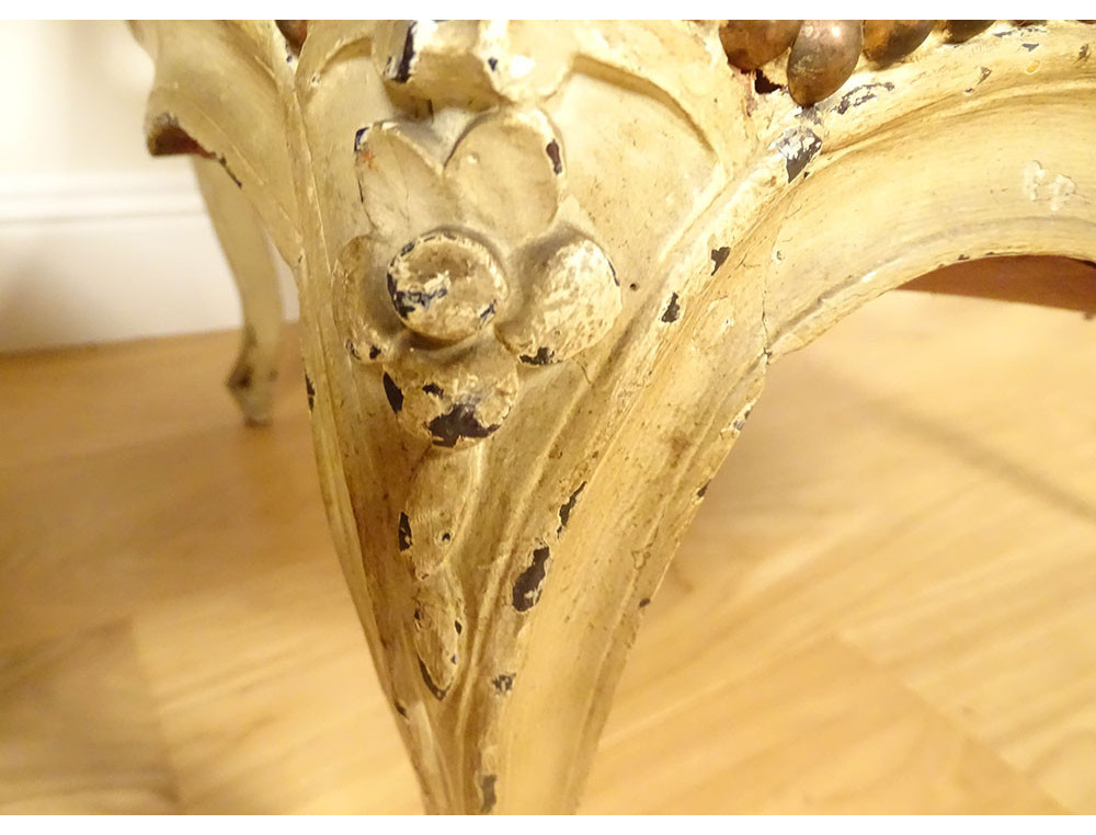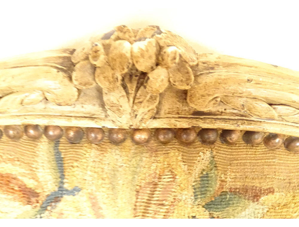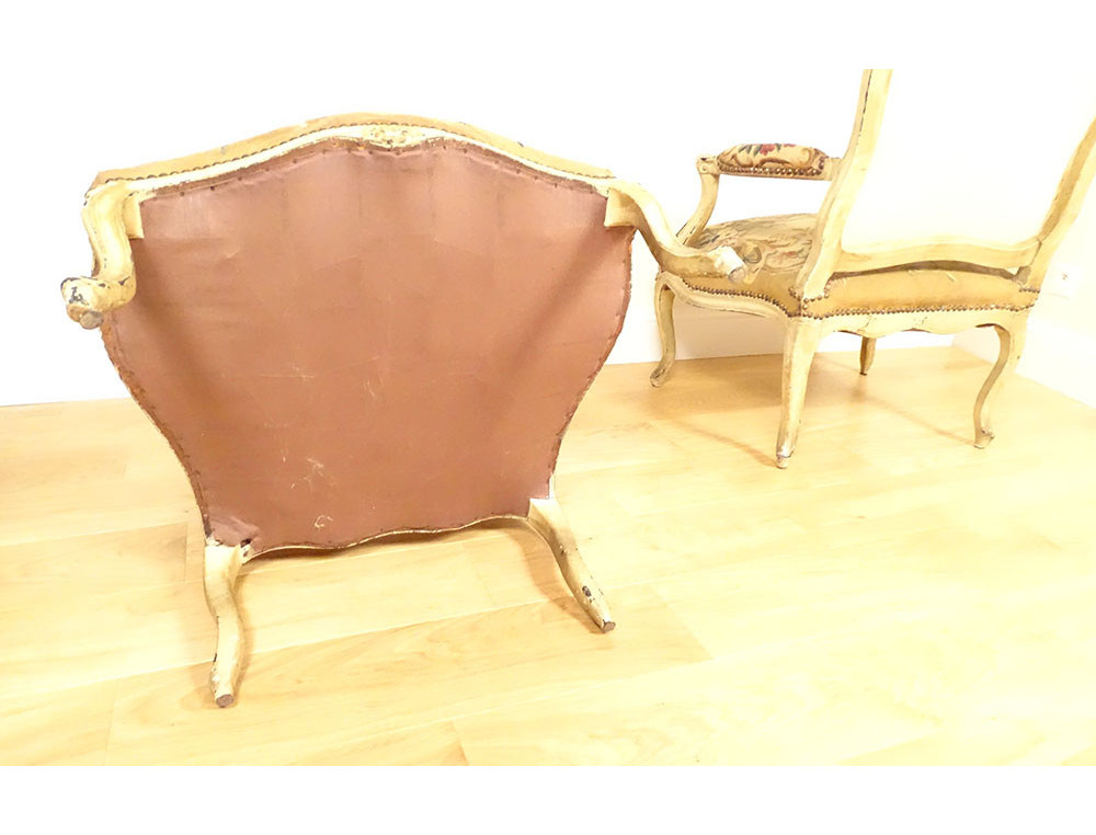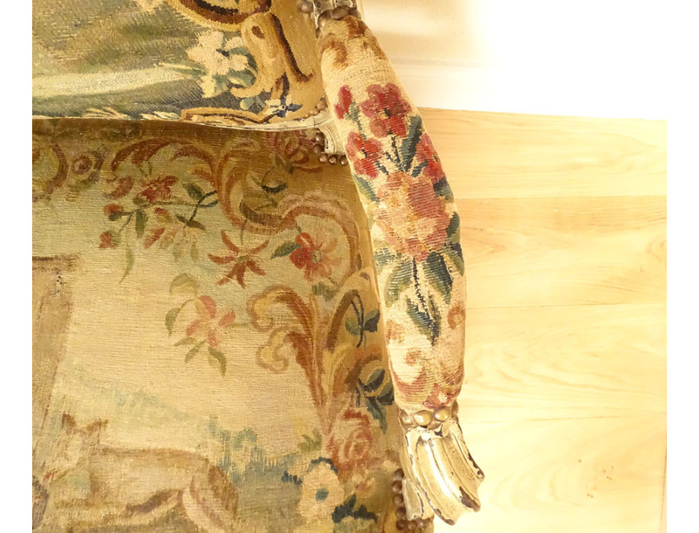* The name "Fauteuil à la Reine" (Queen's Armchair) appeared in 1730 during the second half of the 18th century. This type of armchair was brought up to date by Queen Marie Leczinska (1703 – 1768), wife of Louis XV. The Queen's armchair is a Louis XV and Louis XVI style seat characterized by its flat back (rectangular, square, oval, violin-shaped). Manufactured until the end of the 18th century, the Queen's armchair is adorned with cartouches, shells and clasps decorated with water leaves or acanthus. This Louis XV armchair favors richly flowered tapestries, bordered with gilded or lacquered wood. The Queen's armchair is described as "furniture" because its more massive design does not predispose it to being moved. (See Antic Store website)