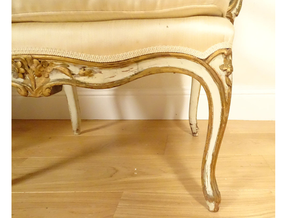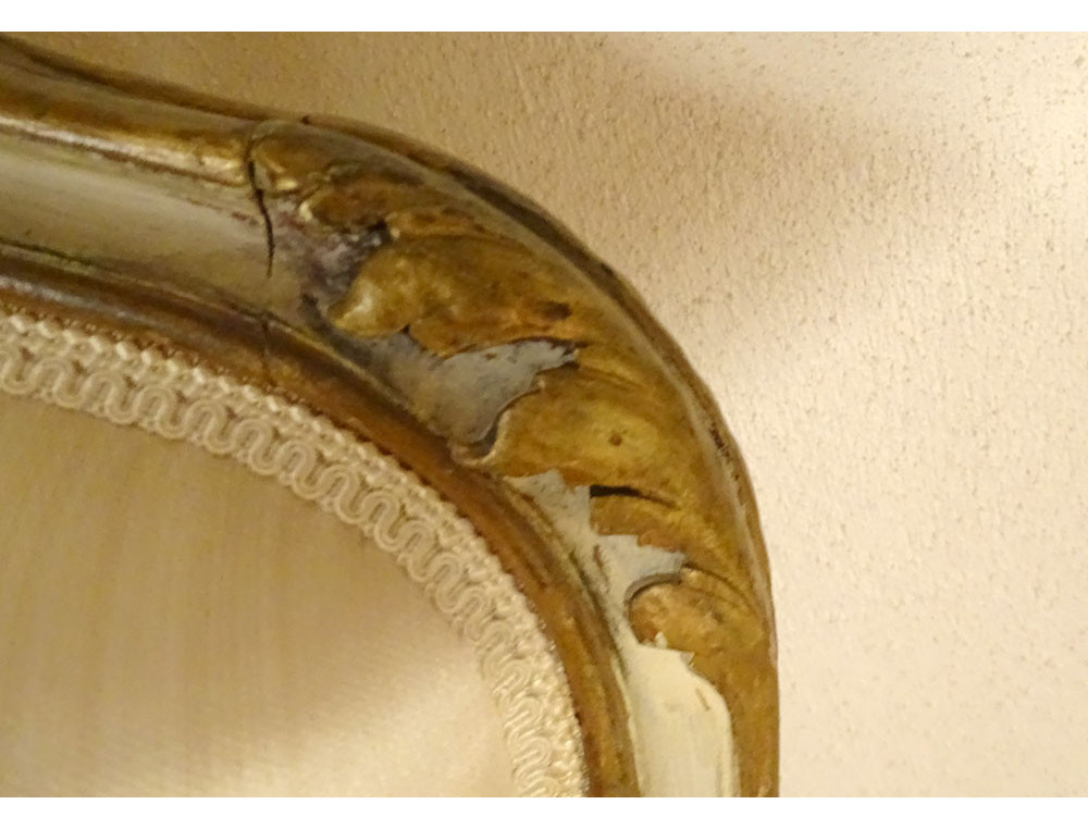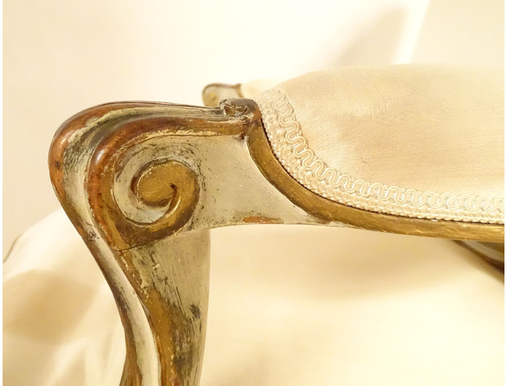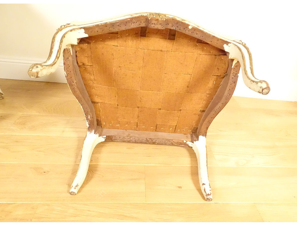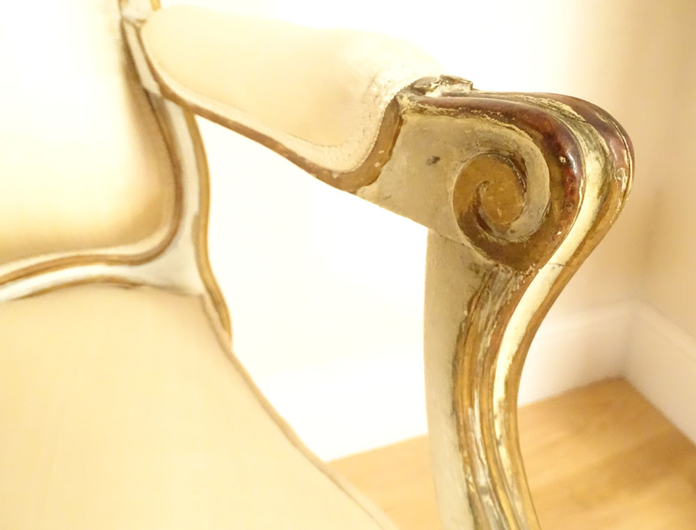 Please note: some slight accidents and missing paint and gilding in places, some stains on the cushions and upholstery, wear and tear, see photos.