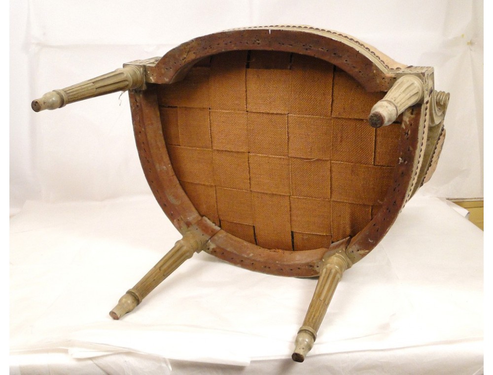 This chair is in good condition. The tapestry trim dots is later (XIX). It is stamped below: Jurande (JME) and cabinetmaker FCHE ...? (Stamp damaged see photo).