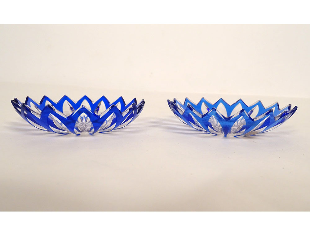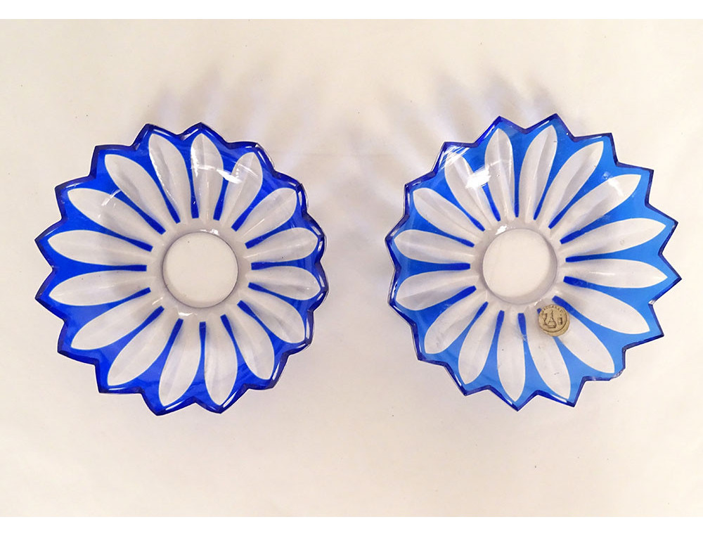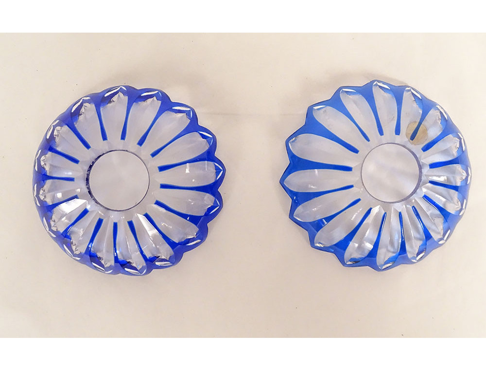 Pair of bobeches (for candlesticks, candelabras or chandeliers) in red and translucent crystal, signed Baccarat* France, from the 19th century.