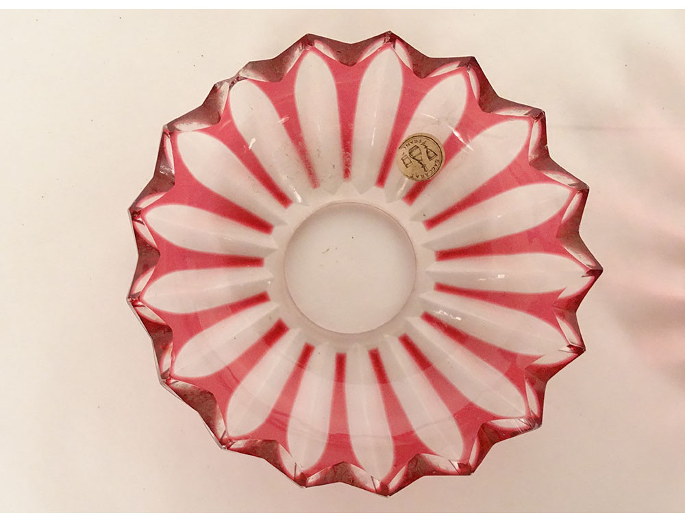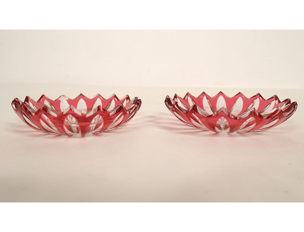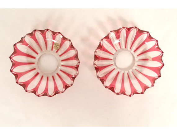 Pair of bobeches (for candlesticks, candelabras or chandeliers) in red and translucent crystal, signed Baccarat* France, from the 19th century.