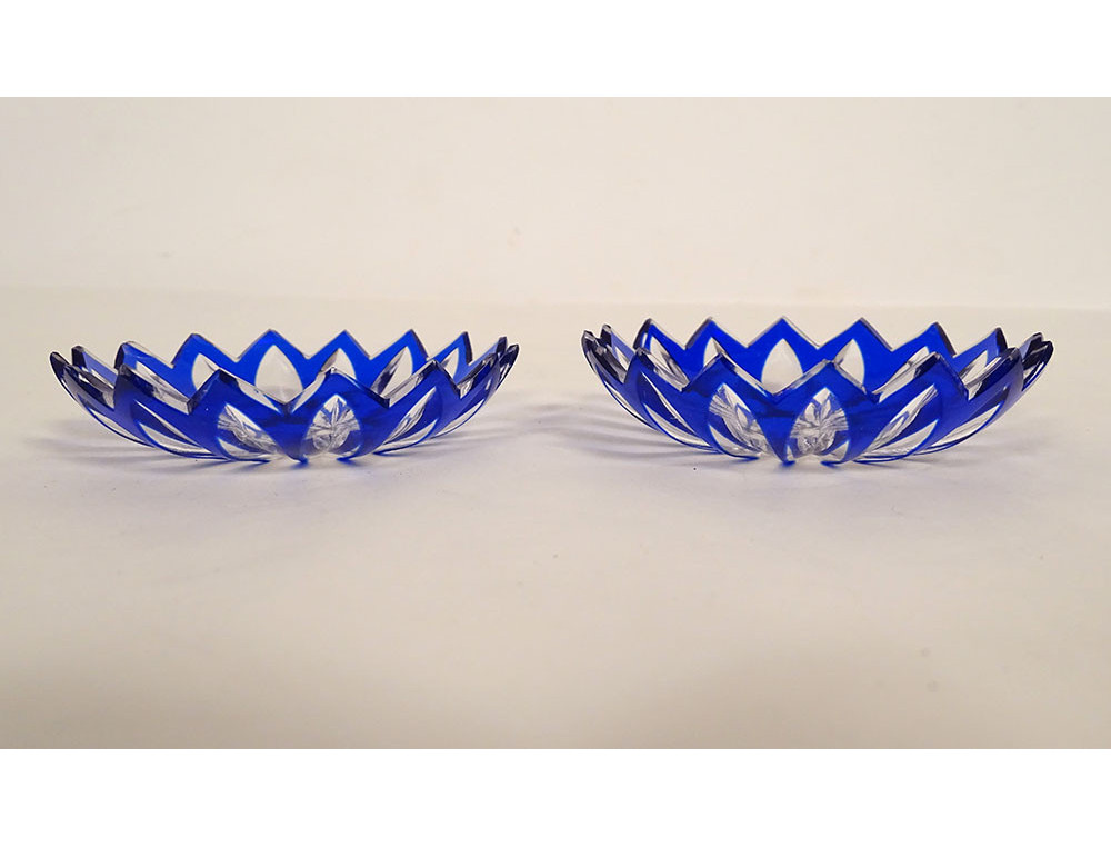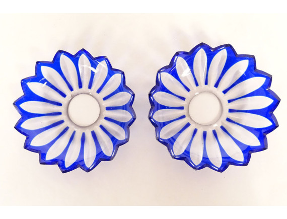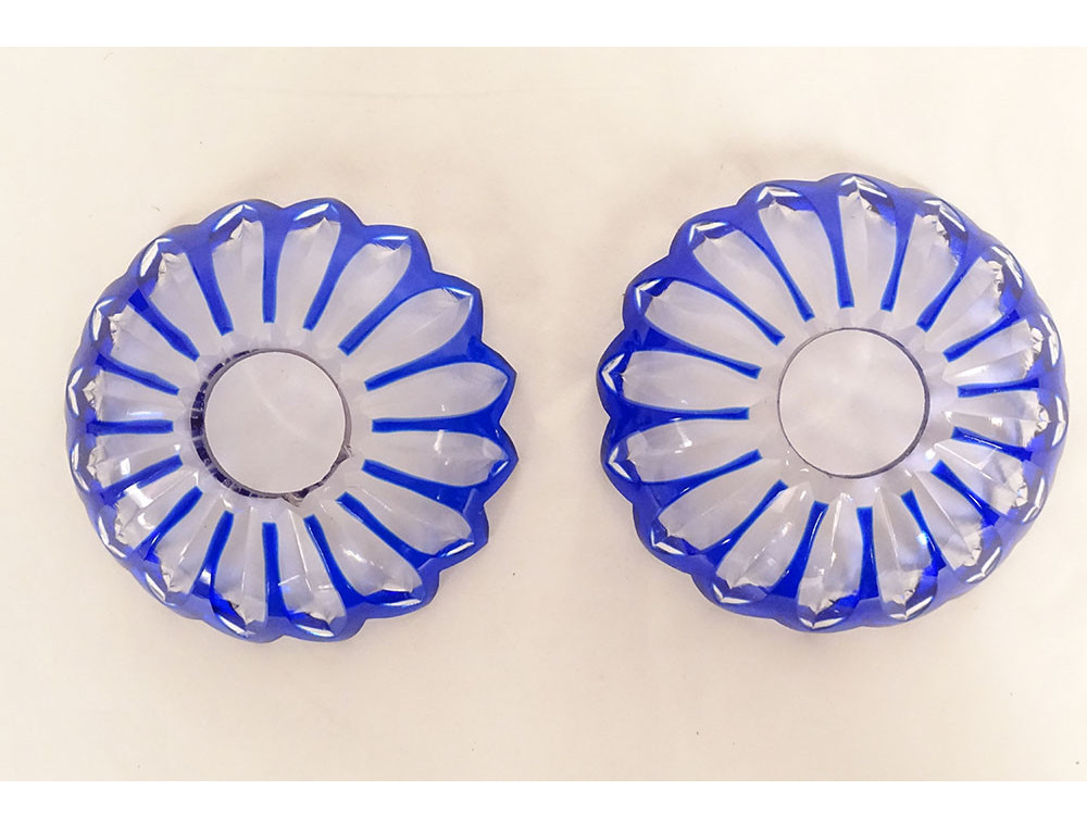Pair of bobeches (for candlesticks, candelabras or chandeliers) in red and translucent crystal, signed Baccarat* France, from the 19th century.