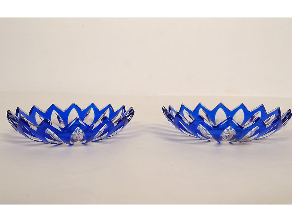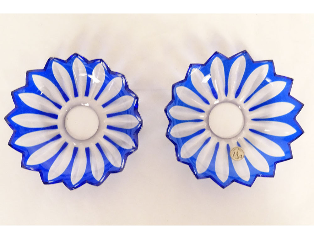 Pair of bobeches (for candlesticks, candelabras or chandeliers) in red and translucent crystal, signed Baccarat* France, from the 19th century.