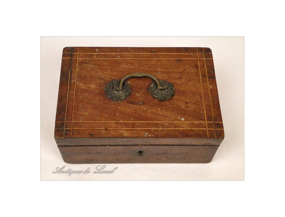 Pretty little box in rosewood and lemon fillets, gilt brass handle, antique Napoleon III nineteenth century.