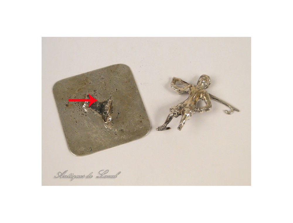 Lovely little character starting to hunt on skis, in silver or silver vintage late nineteenth and early twentieth centuries.
