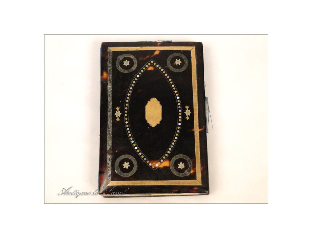 Dance card of tortoiseshell, brass, gold nets and pearl, antique 19th century Napoleon III.