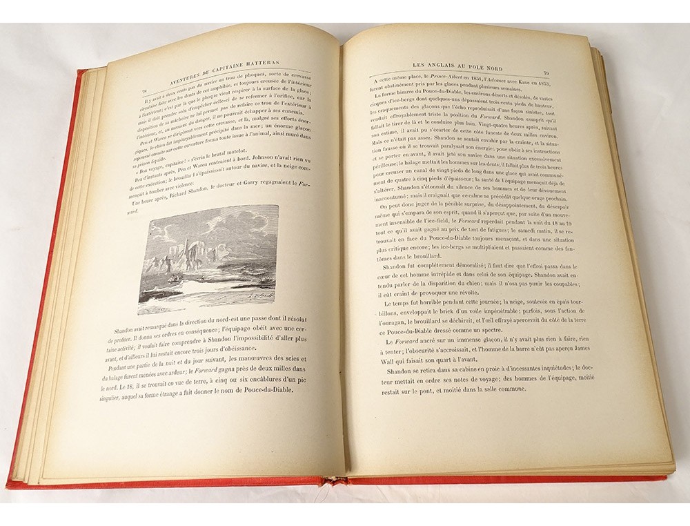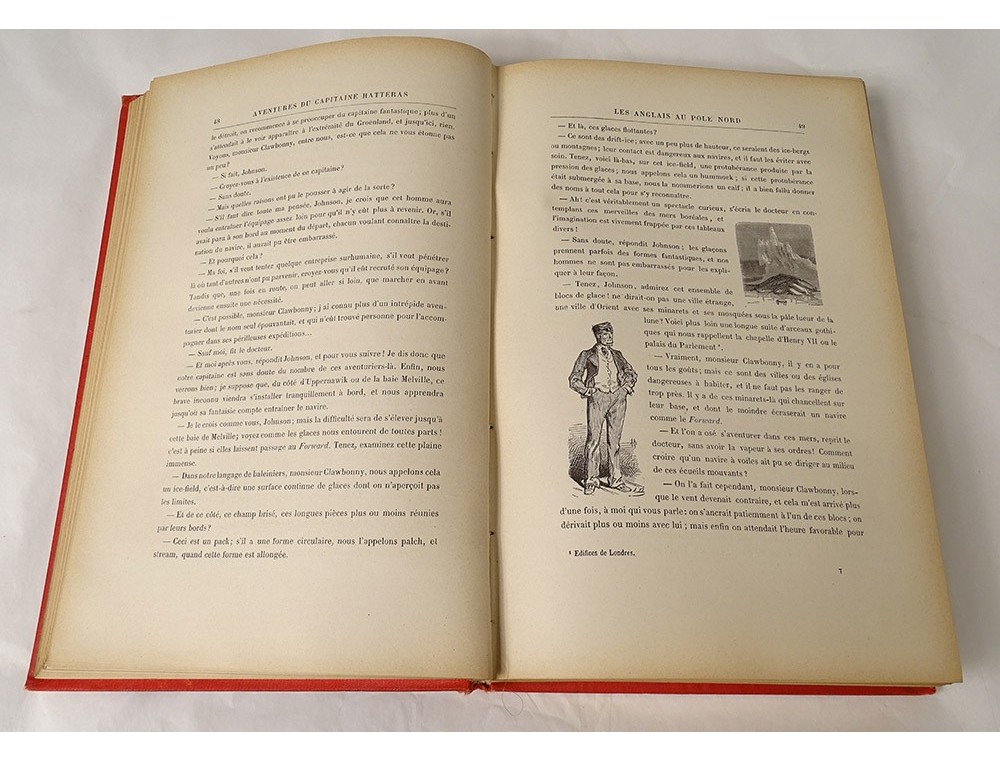 Rare book "Mistress Branican" by Jules Verne Original Hetzel collection (Hetzel et Cie 18 rue Jacob Paris), series of "Voyages Extraordinaires", undated (1890-91), with 83 drawings by Benett, 12 engravings in chromotypography and two cards in chromolithography, hard cover with potrait, from the 19th century.