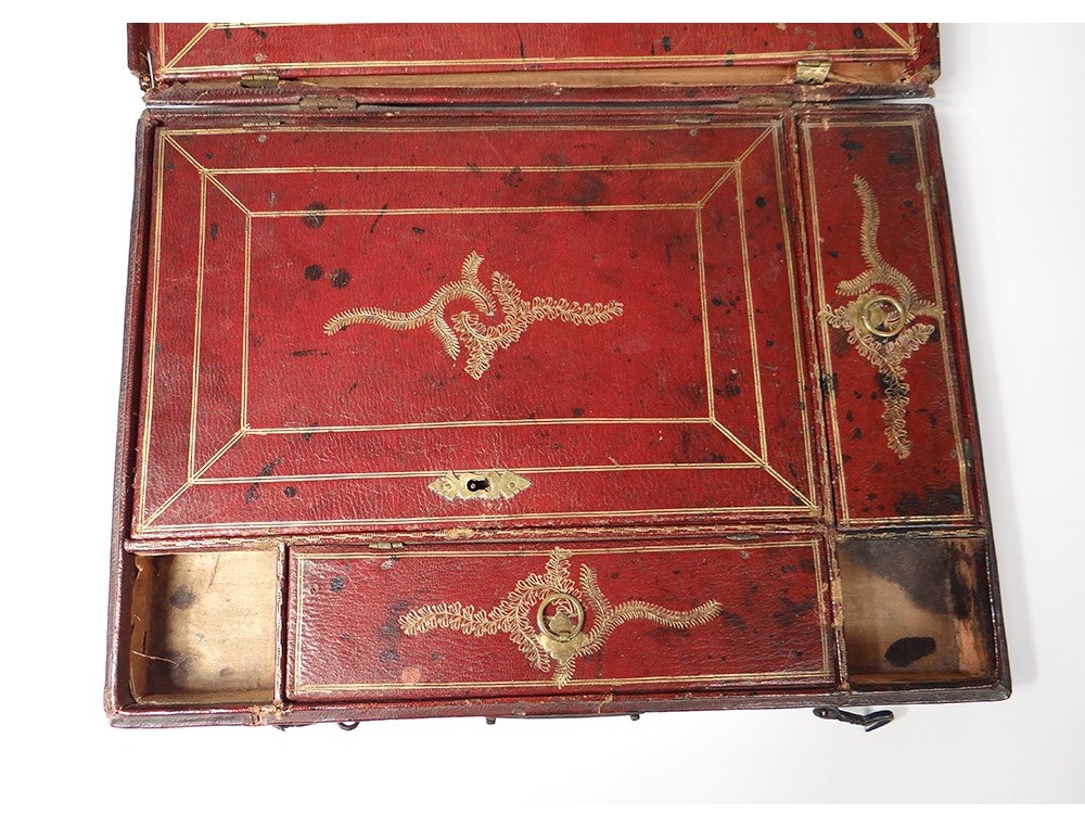 Writing case of travel box embossed leather gilded brass seventeenth eighteenth century