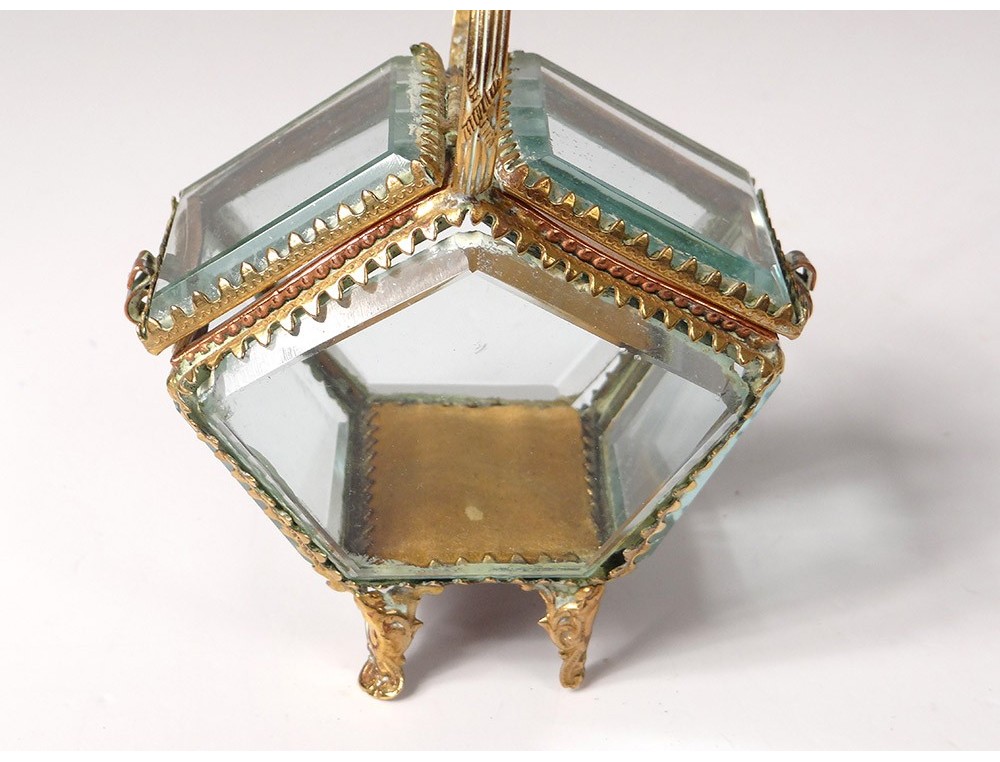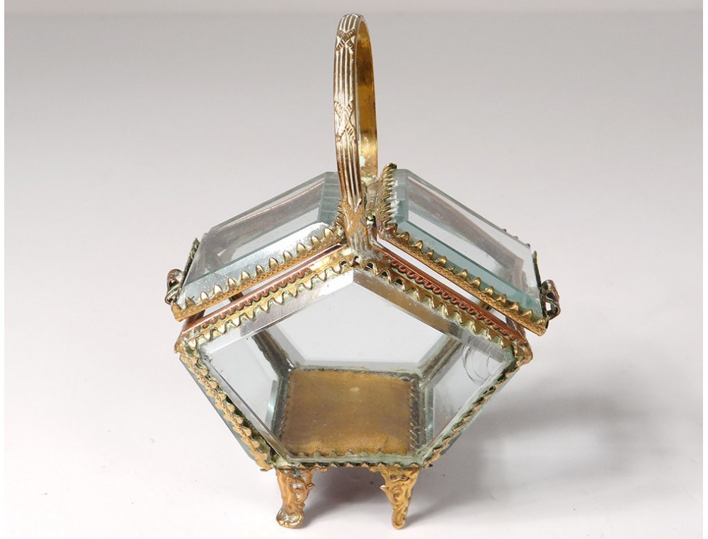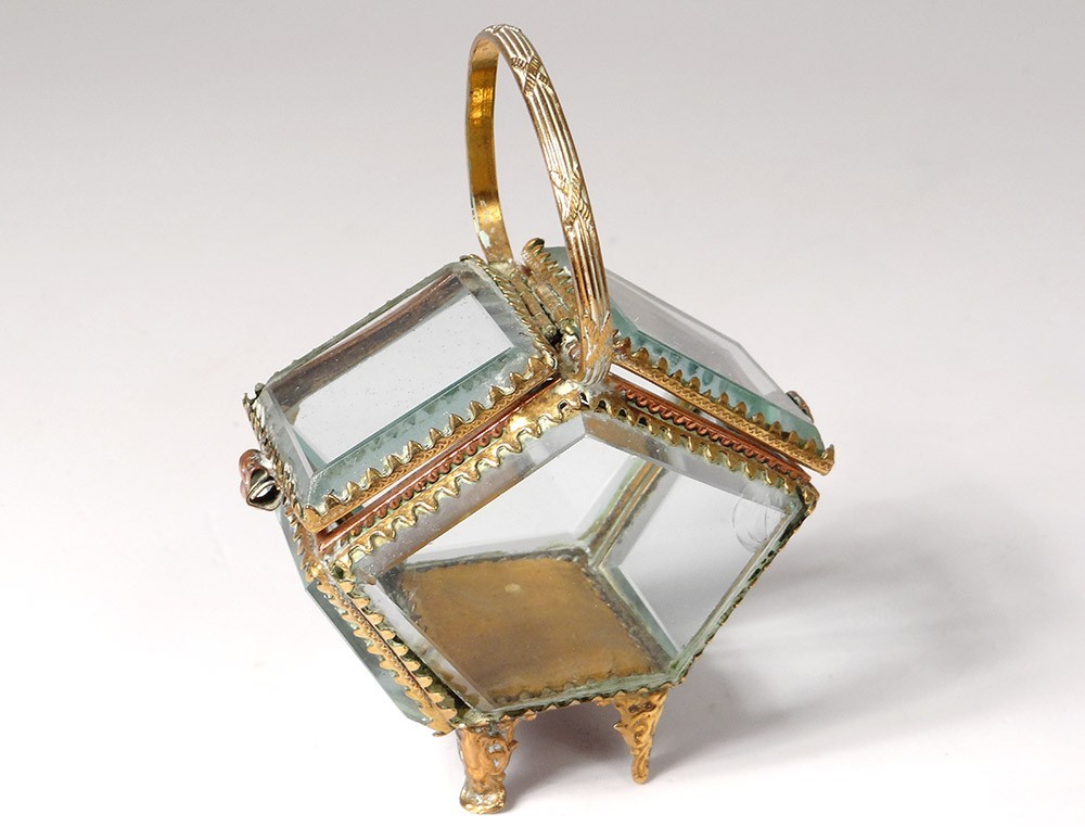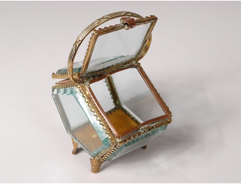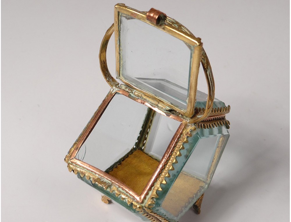Jewel box box gilded brass beveled glass engraved Napoleon III nineteenth