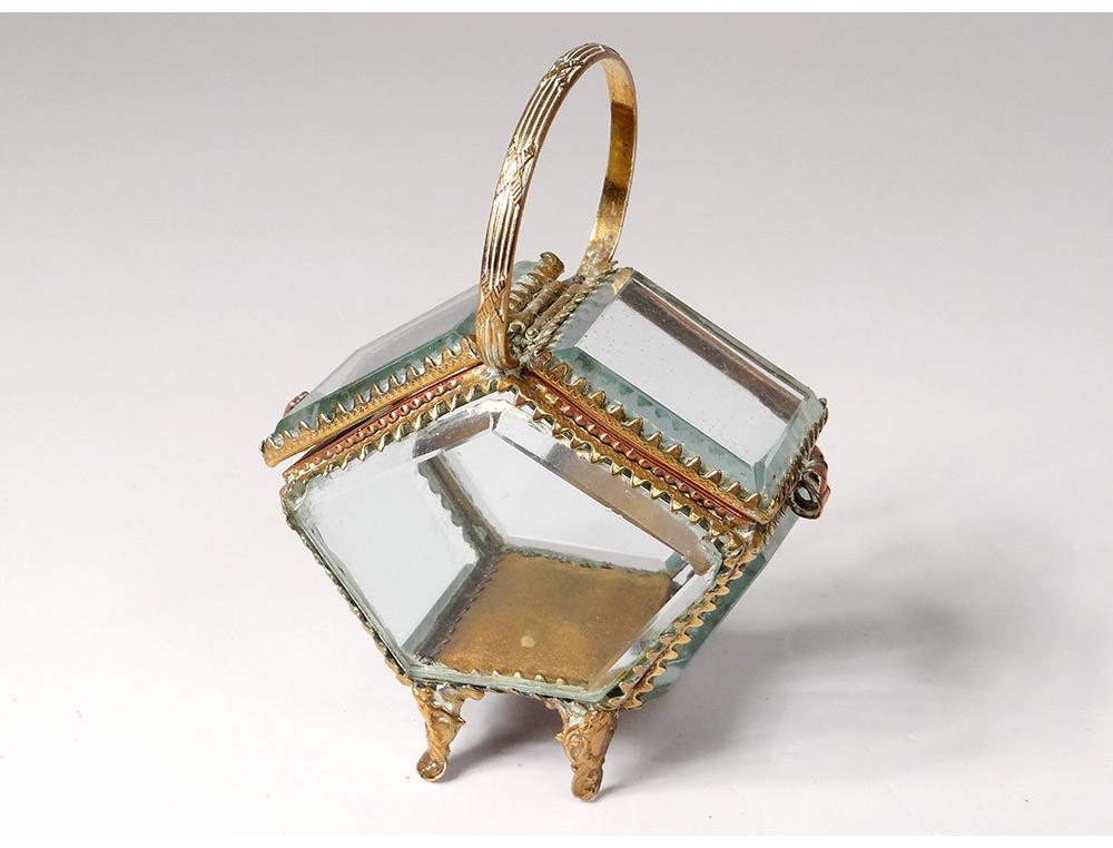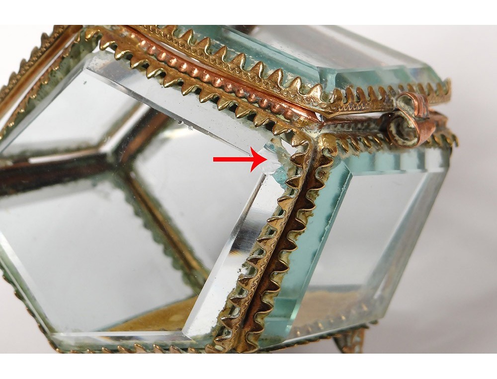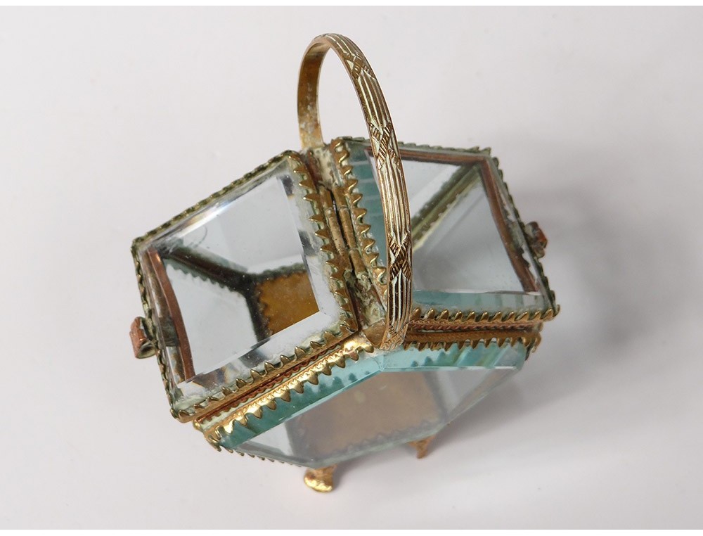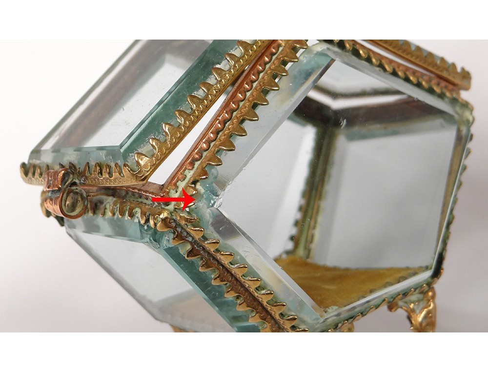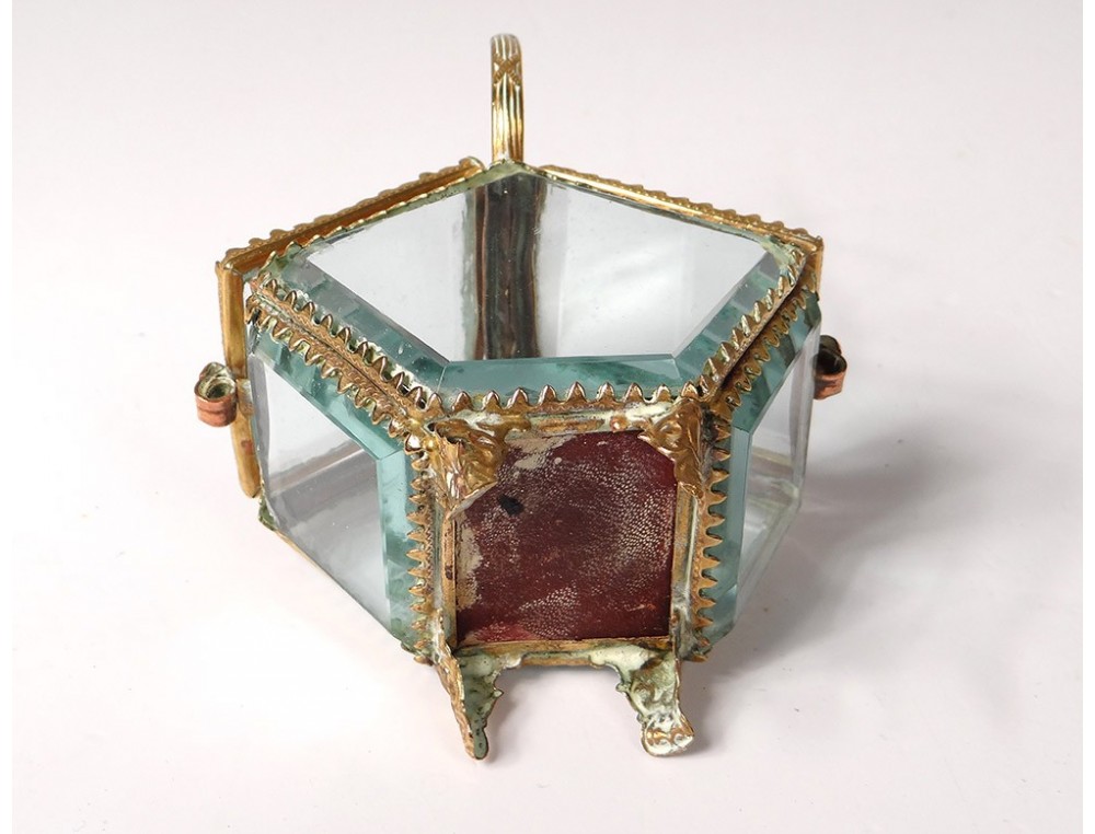 Jewel box box gilded brass beveled glass engraved Napoleon III nineteenth