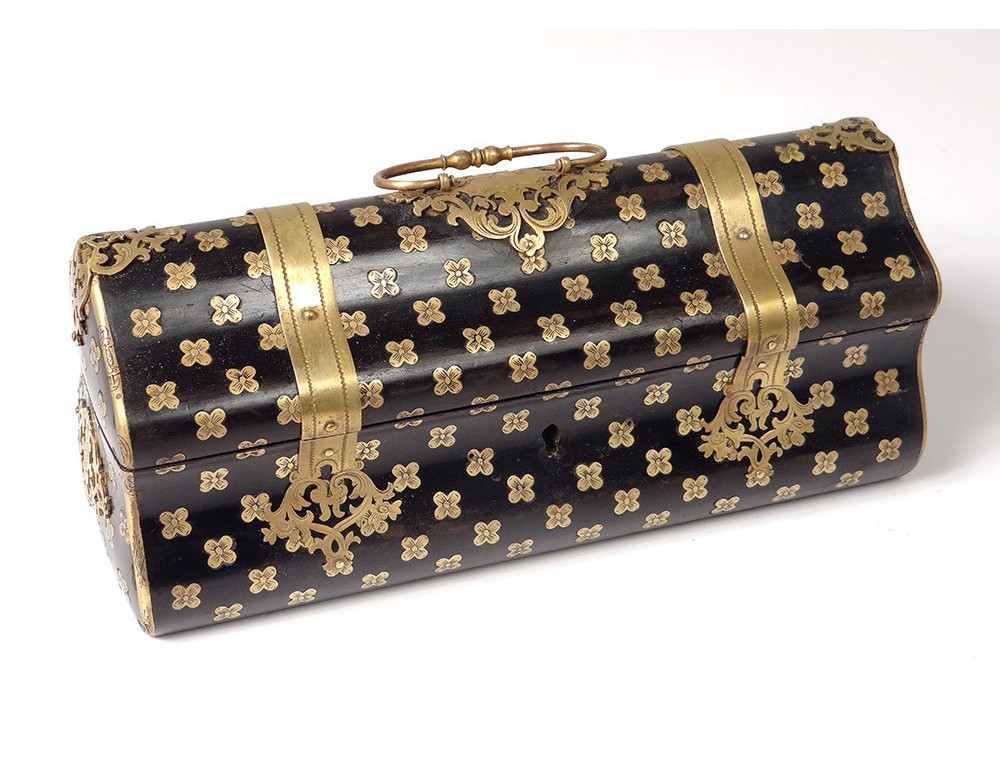 Glove box in blackened wood and gilded brass marquetry, decorated with small flowers and foliage, signed Alphonse Giroux * & Cie in Paris, from mid-19th century.