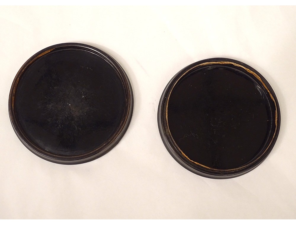 A note: some small accidents and losses on the internal border of the box (see last photo), small shocks and restorations on the edge of the box, wear of time (see red arrows).