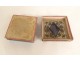 Small cardboard box decorated with gold and embossed paper, decorated on the lid with a rebus ("C'est la Musette des Pensées") surrounded by small stylized flowers, scrolling motifs and plants, from the romantic period first part Nineteenth century.