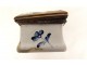 Small enamel box decorated with a landscape of ruins with figures in the foreground, bouquets of flowers on the sides, brass frame, old collector's label inside (ace coat of arms), vintage 18th century.