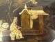 Tea box lacquered wood gilded Chinese characters pagodas garden China 19th century