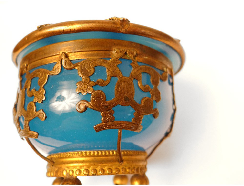 Beautiful jewelry box opal and polished brass, signed by Delacroix 11 Boulevard des Capucines shop near the rue de la Paix, the quality of the famous opal store Palais Royal Napoleon III nineteenth century.