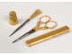 Great sewing kit solid gold finely chiseled head stamped eagle and owl, in an oval case in blackened wood and ebony adorned the cover of a gold monogram, XIXth century.