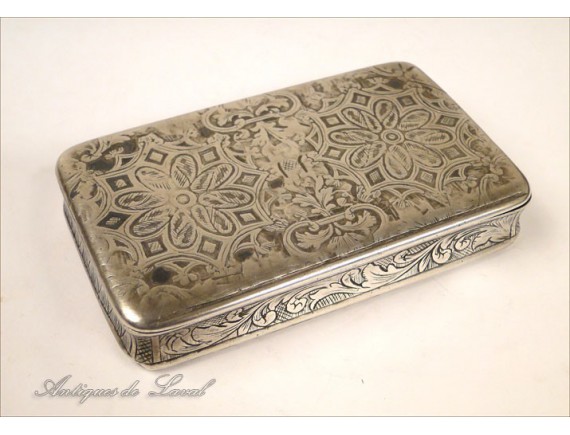 Beautiful sterling silver snuffbox chiselled decoration of flowers and foliage, stamped Minerva and punch goldsmith, Napoleon III nineteenth century.