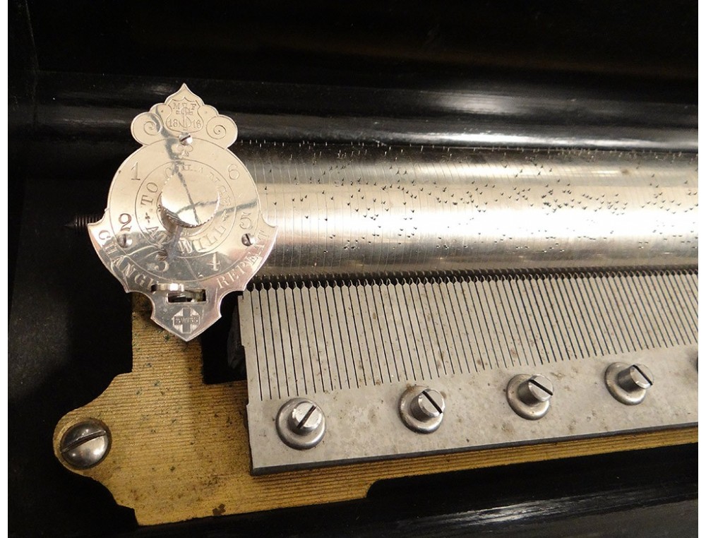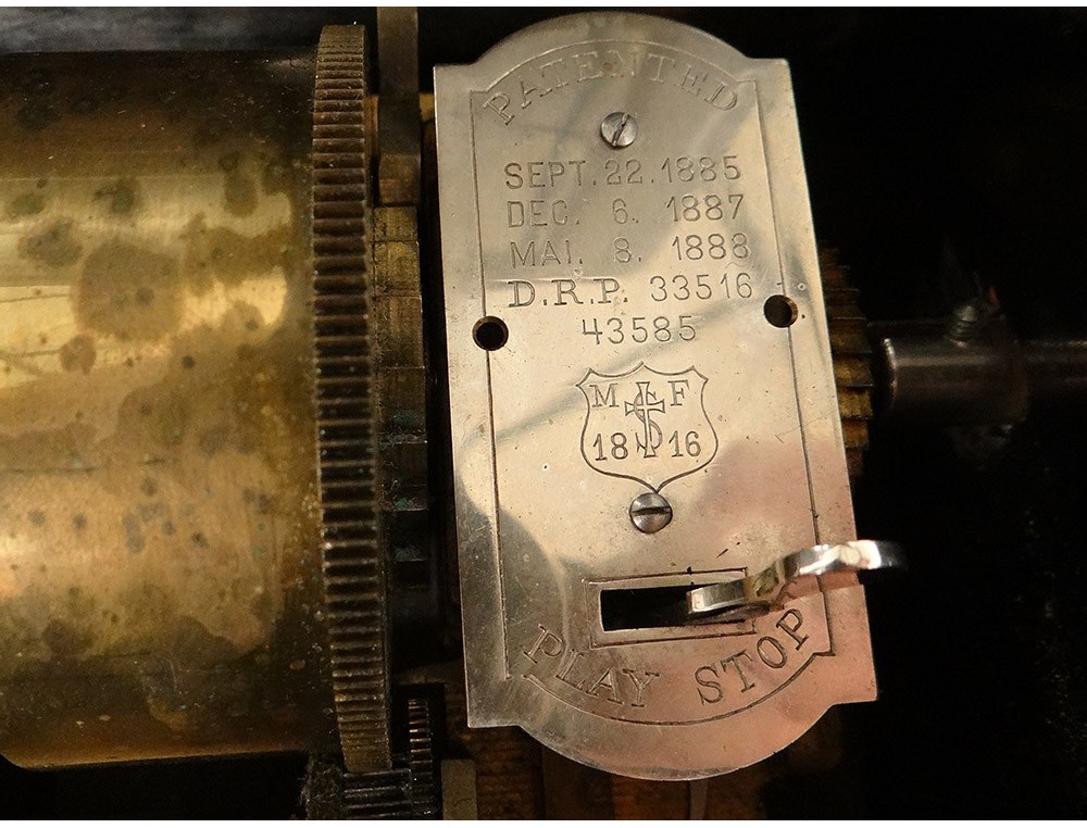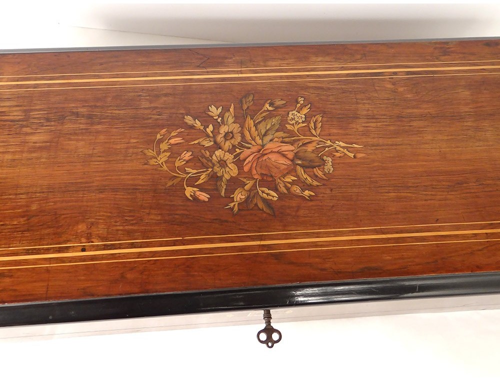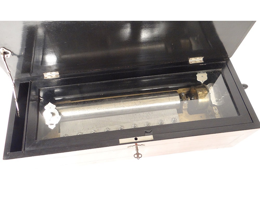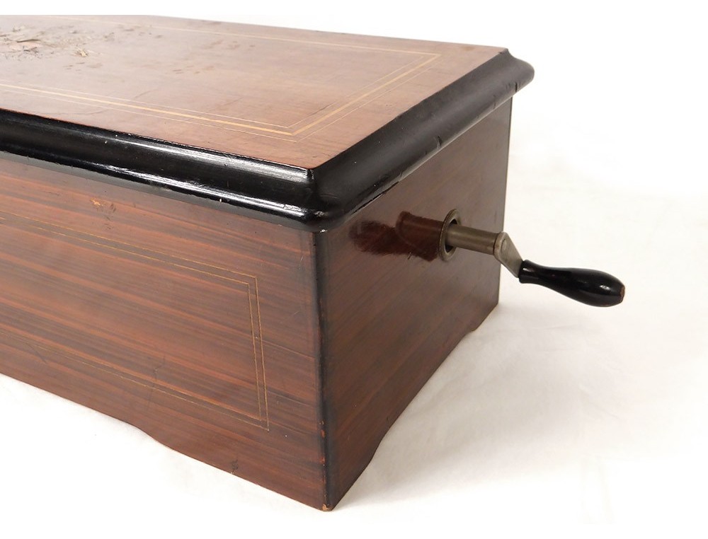 This box is in good condition and is of remarkable quality. The sound is particularly fine and powerful. We have the key, the lock works.