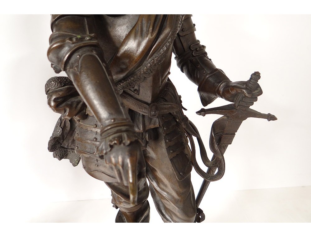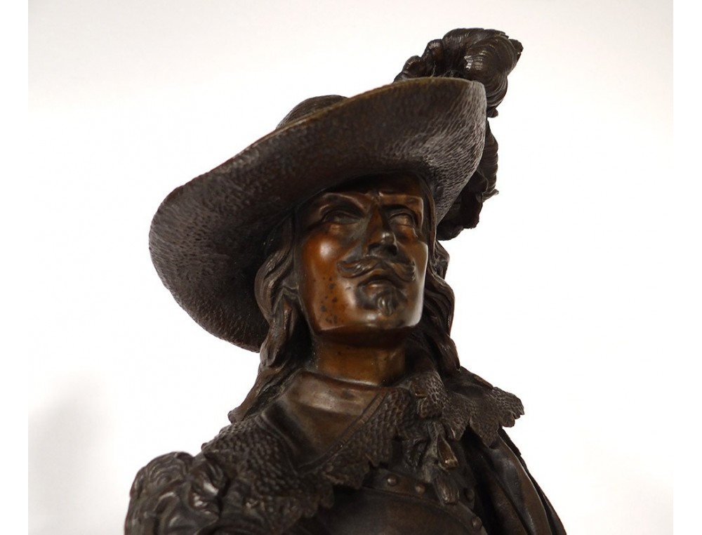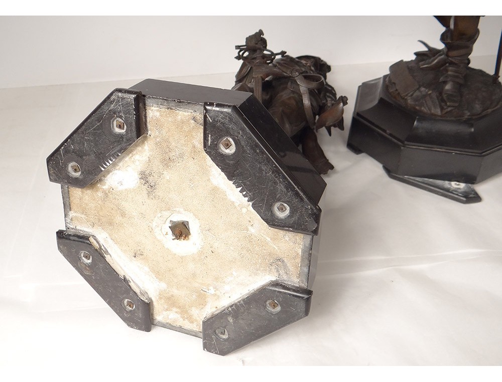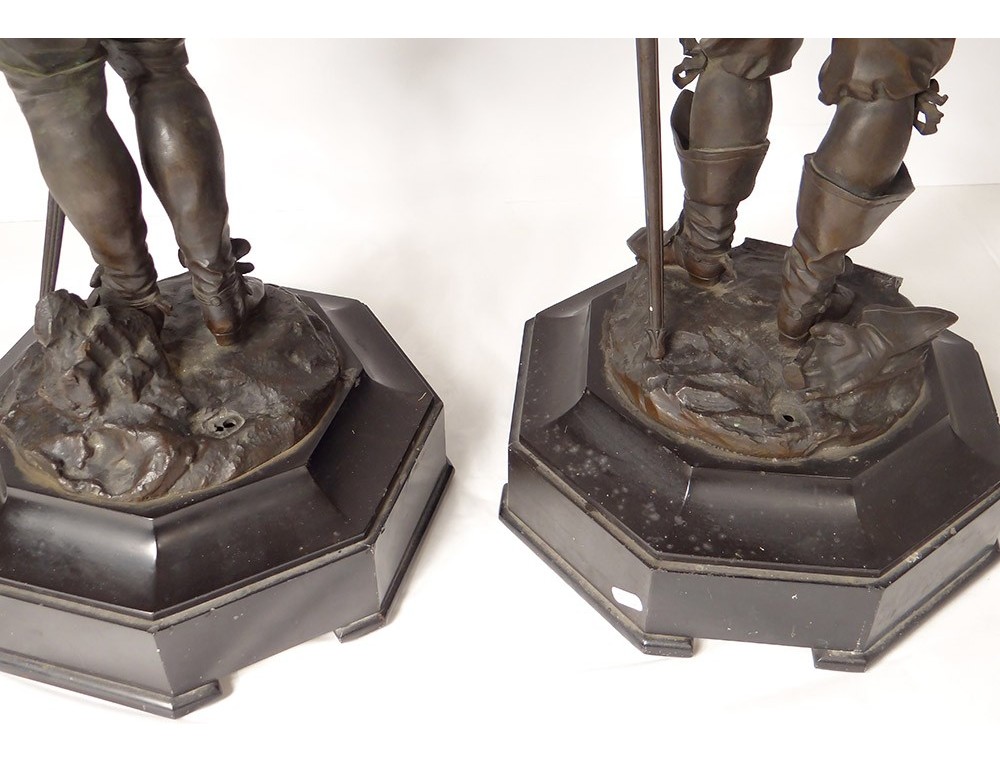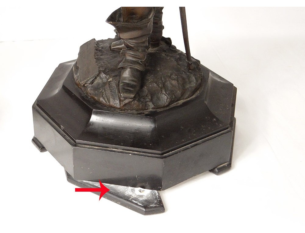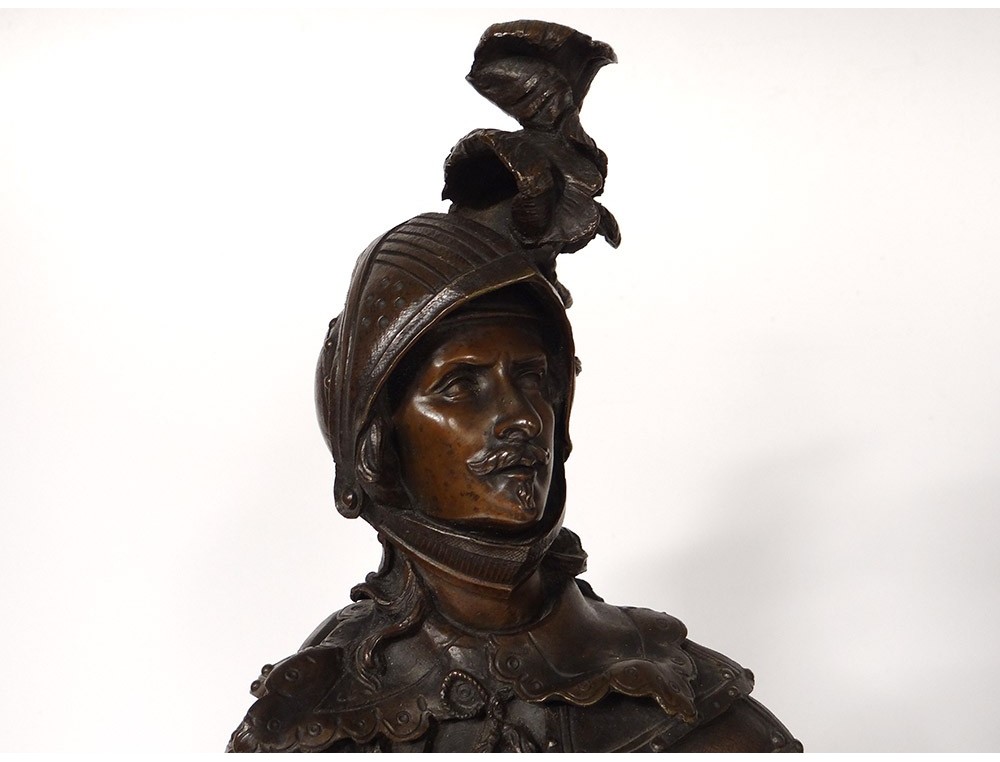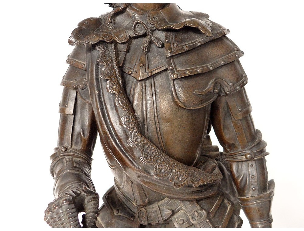 Pair of bronze sculptures signed E. Blavier * and representing Henry II Duc de Guise and the Duke of Bouillon Frederick of the Tower of Auvergne **, both in arms, during the Battle of Marfée *** in 1641 ( against the troops of Richelieu), black marble pedestals, dated 1851 of mid-nineteenth century.