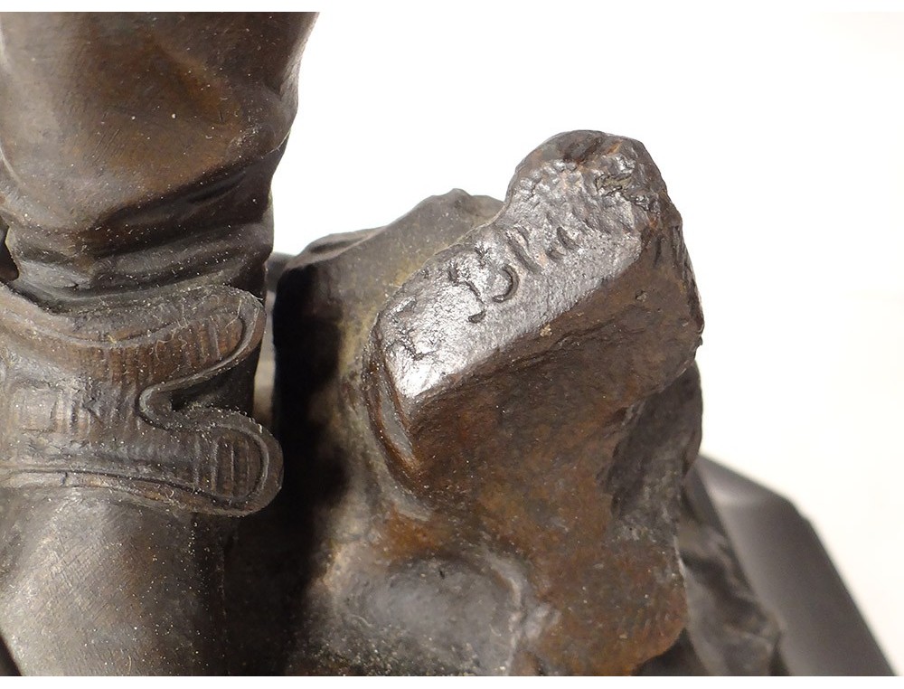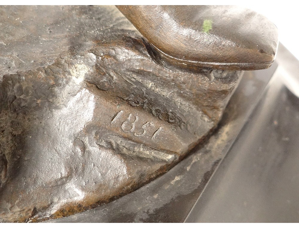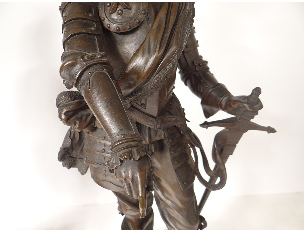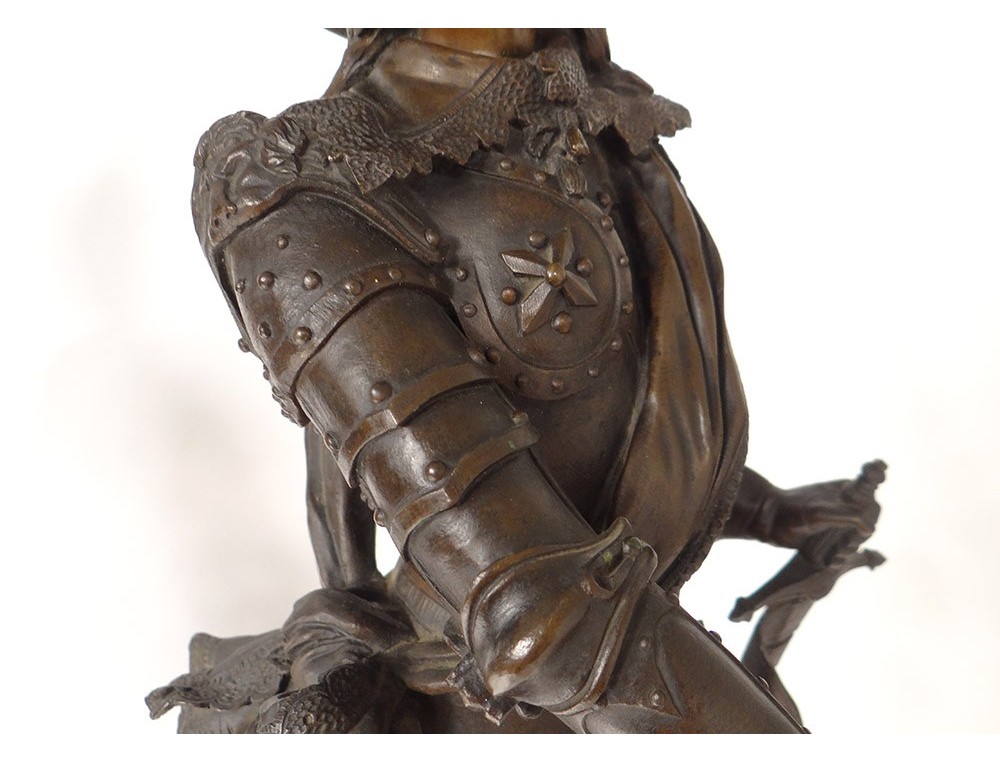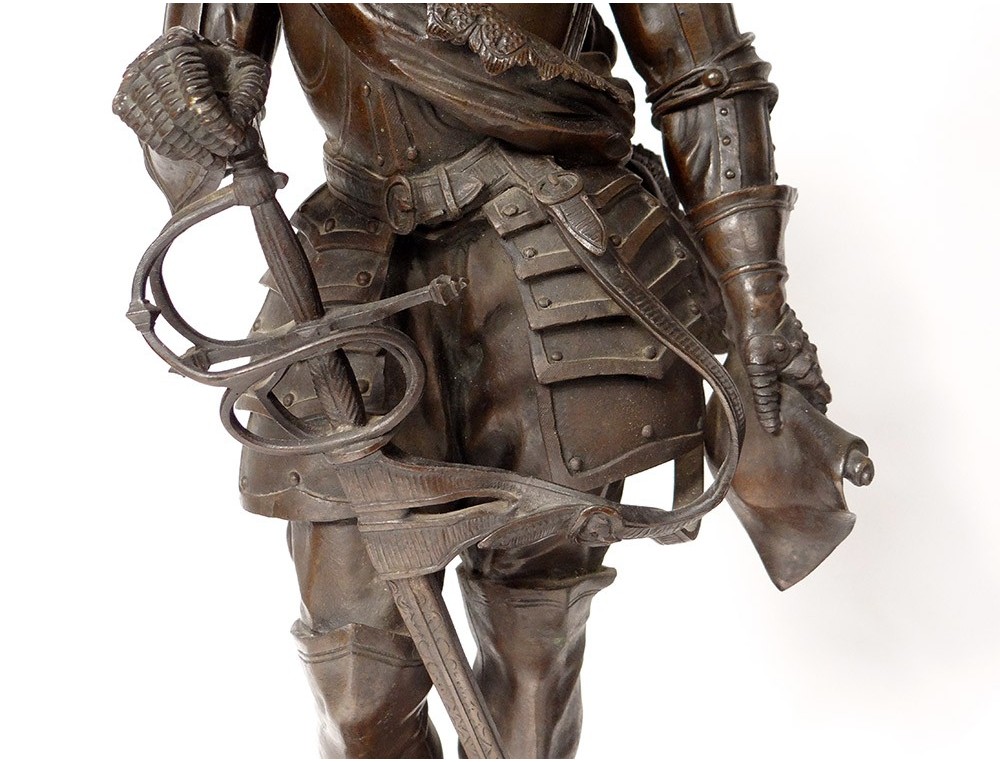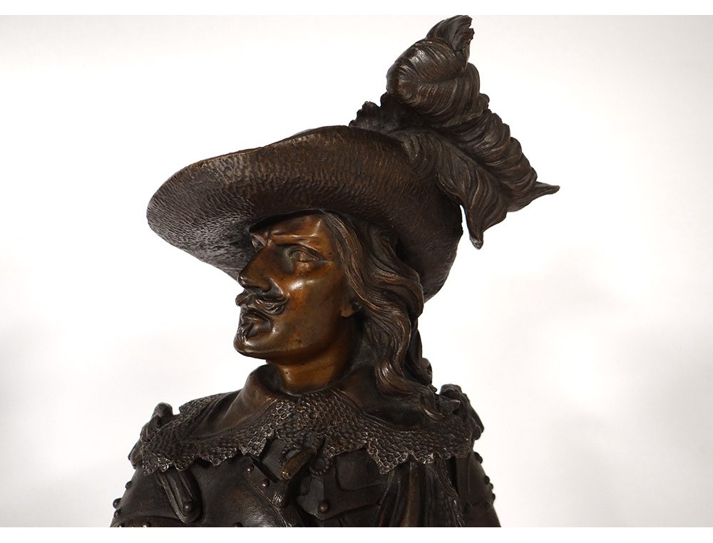 Pair of bronze sculptures signed E. Blavier * and representing Henry II Duc de Guise and the Duke of Bouillon Frederick of the Tower of Auvergne **, both in arms, during the Battle of Marfée *** in 1641 ( against the troops of Richelieu), black marble pedestals, dated 1851 of mid-nineteenth century.