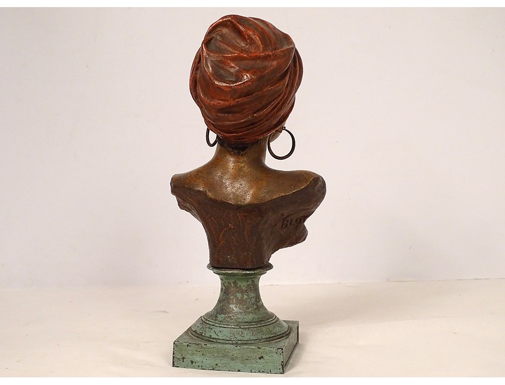 Polychrome bronze sculpture representing the bust of a Creole woman wearing earrings, signed E. Villanis * and founder Blot, from the Art Nouveau period at the end of the XIXth-beginning of the XXth centuries.