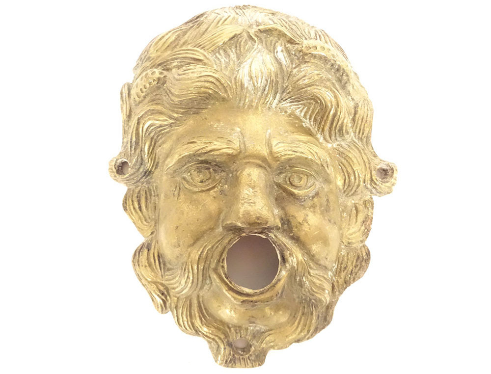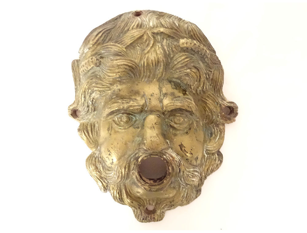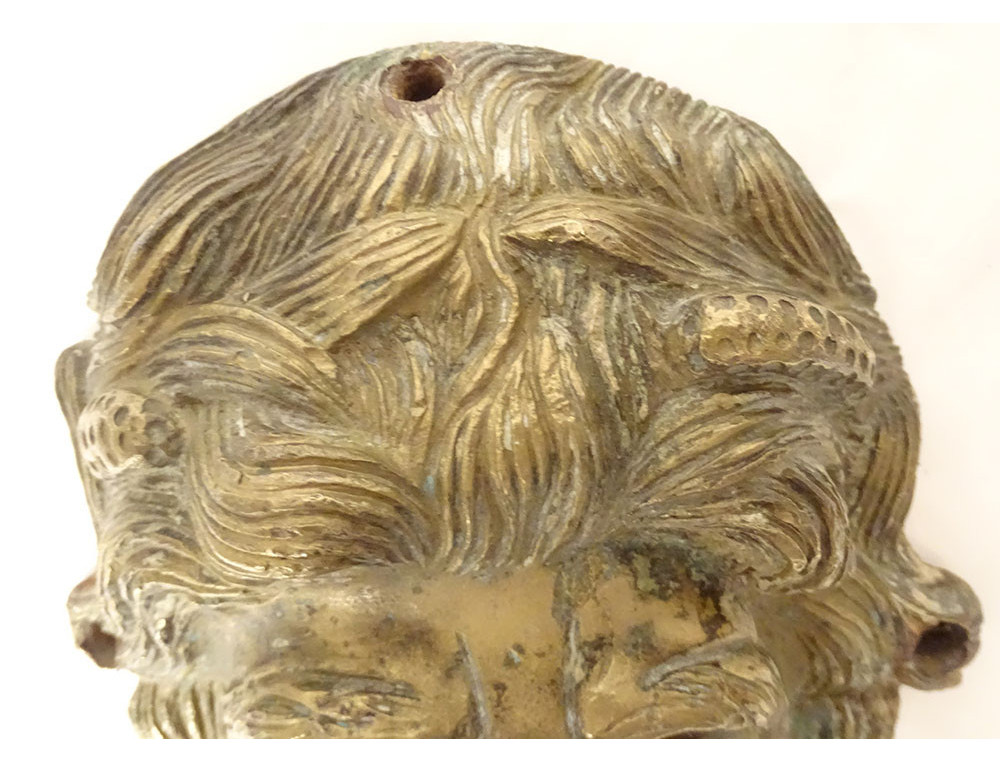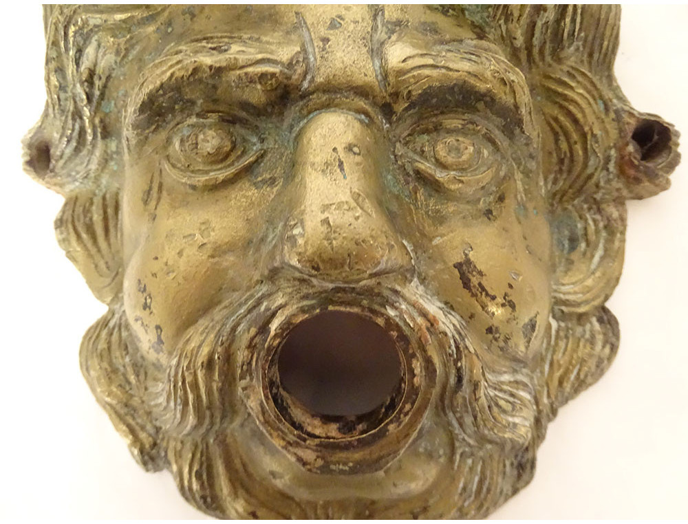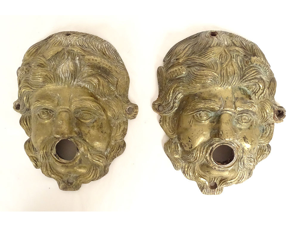 Pair of fountain masks, mascarons, head of the Potamoi River God, bronze, 17th century