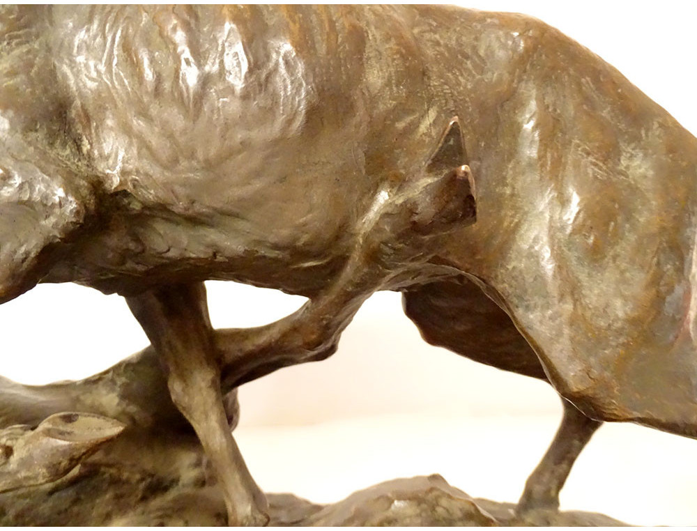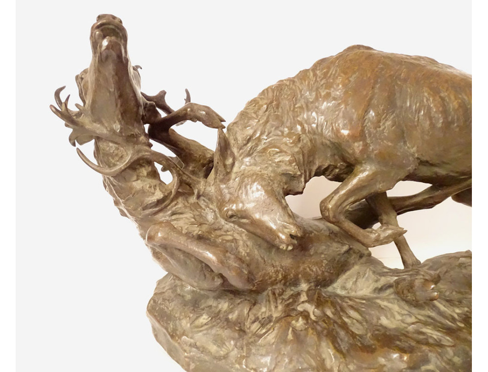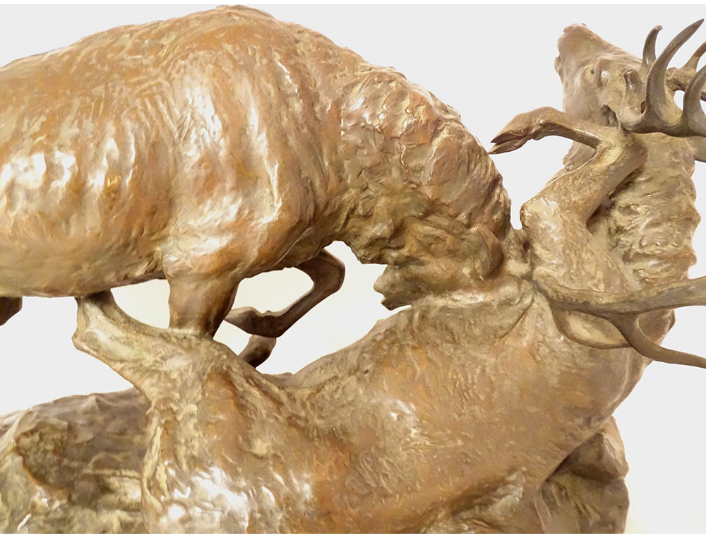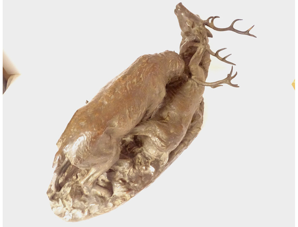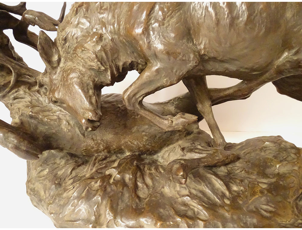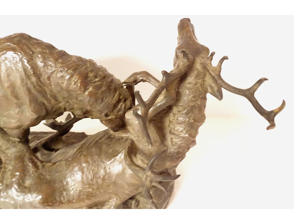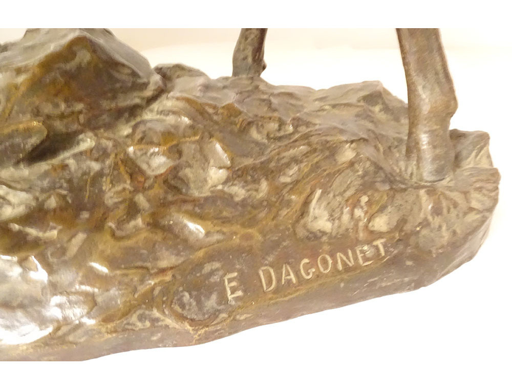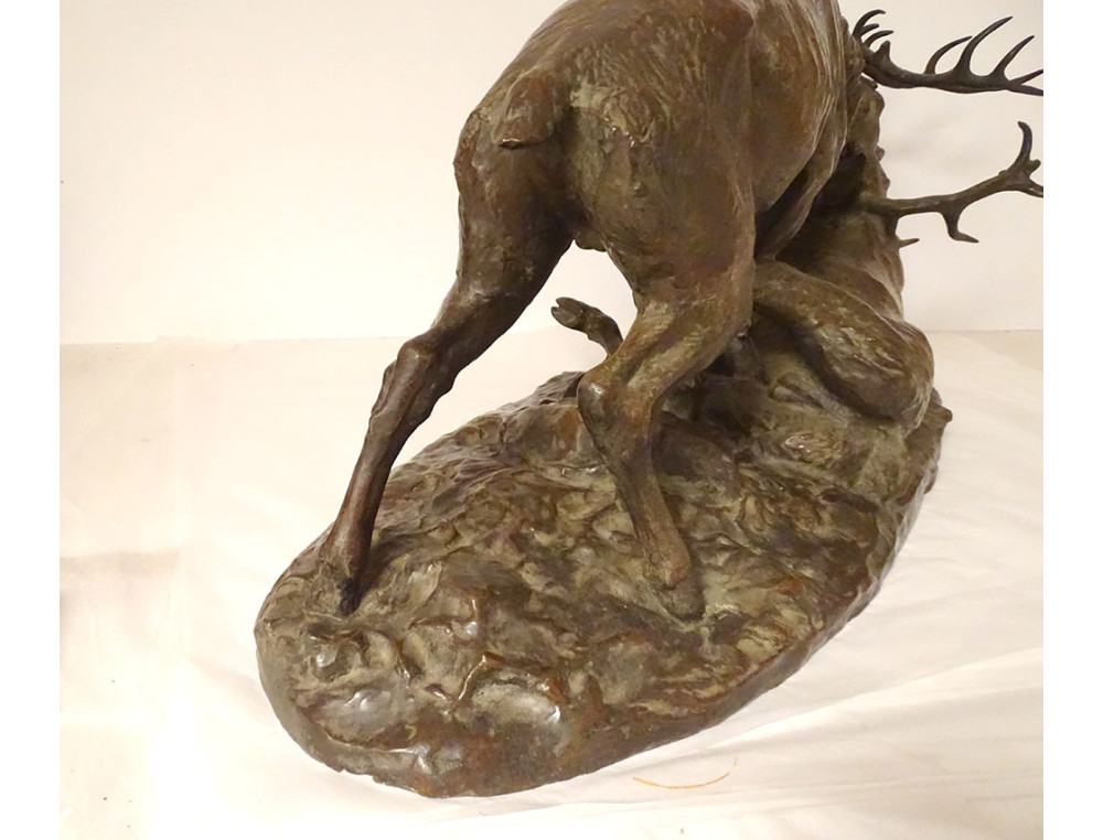 Large bronze sculpture by Ernest Dagonet, depicting deer fighting, 19th century animal sculptor