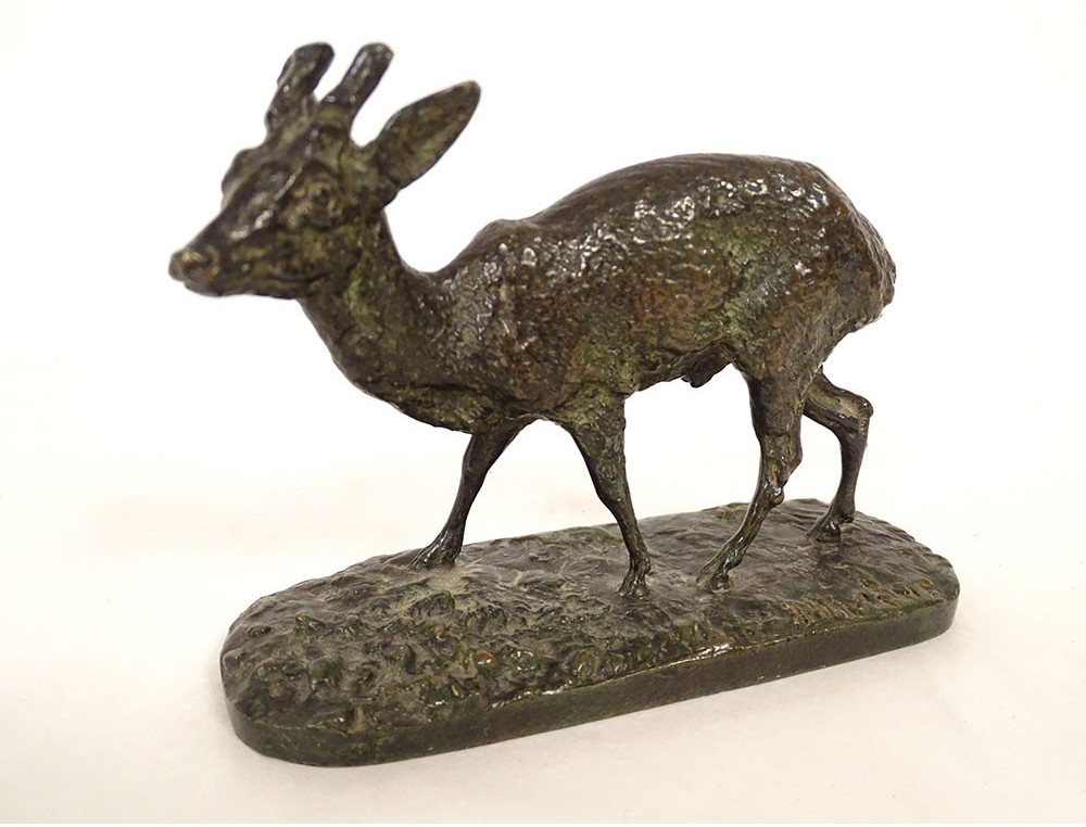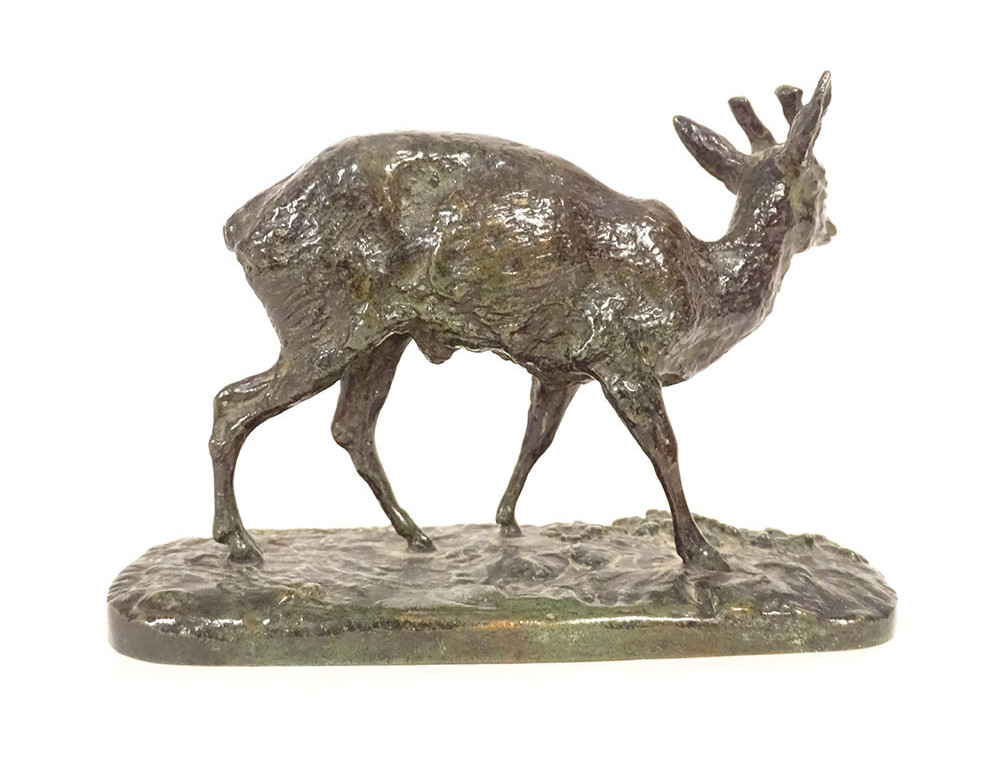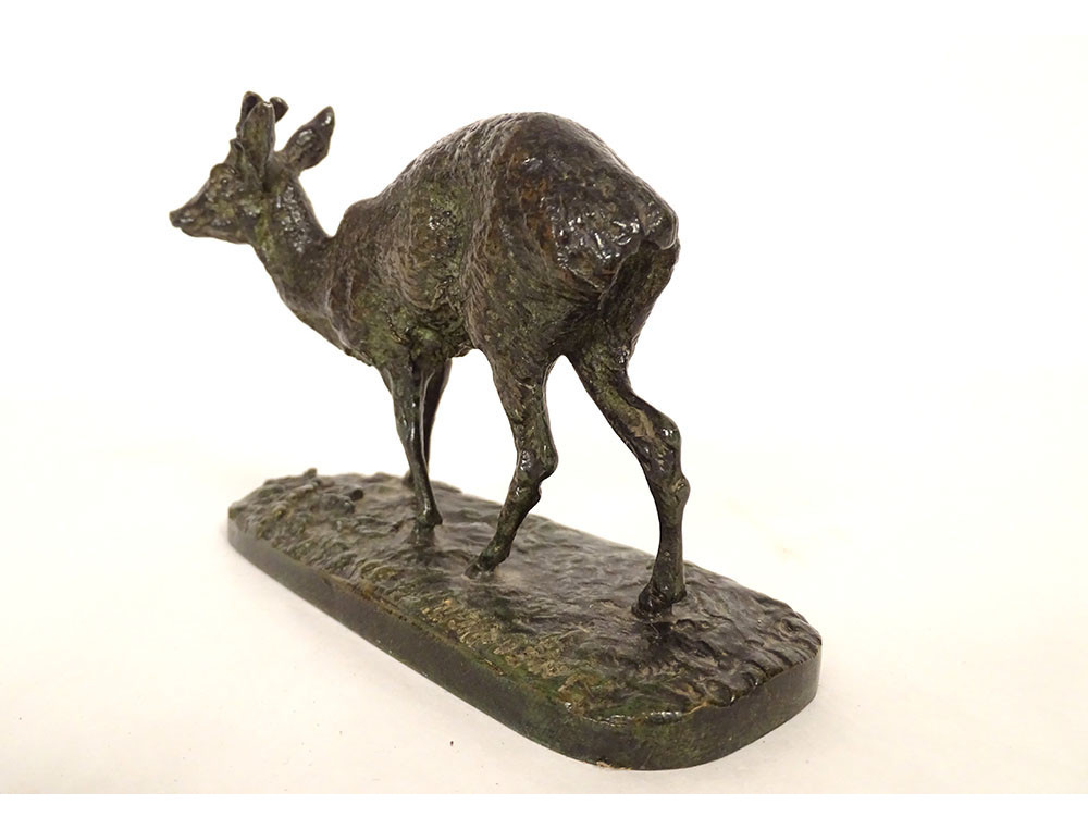 Small bronze sculpture (brown-green patina) representing a roe deer (Roe Deer No. 1), signed PJ Mène*, 19th century