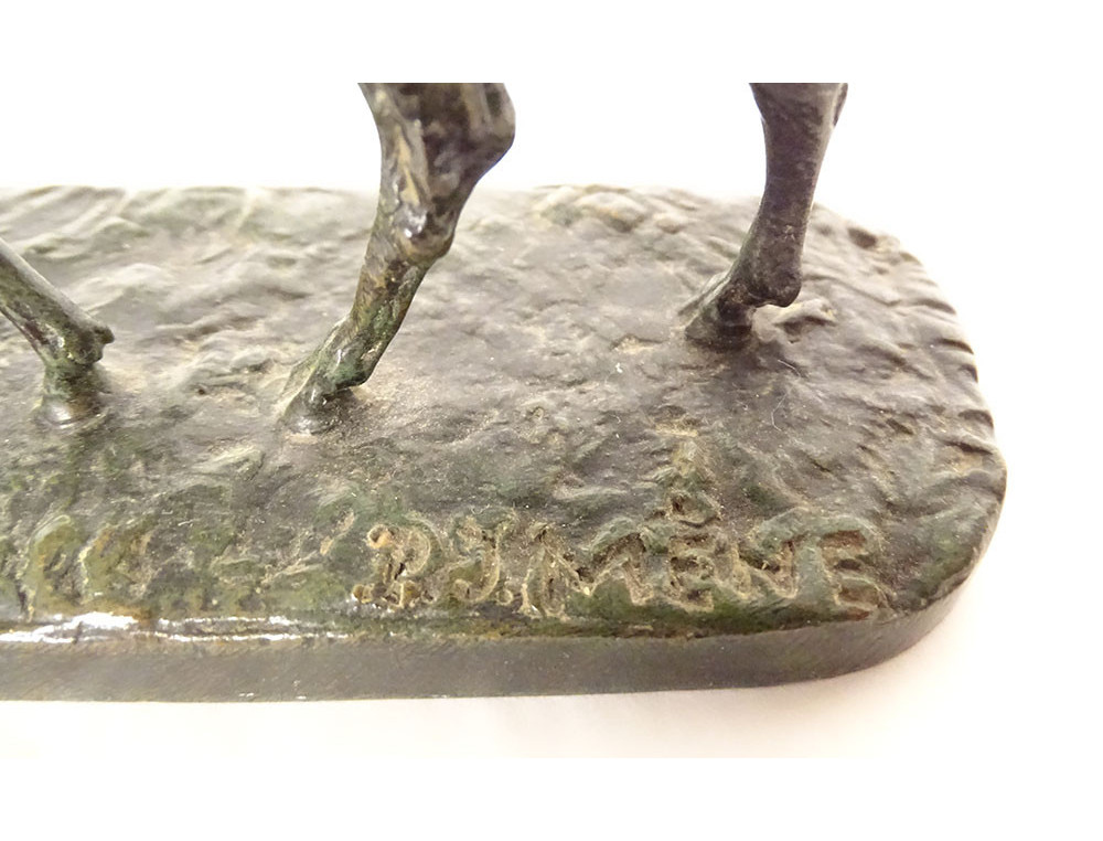The most famous animal sculptor after Barye. Although drawn to sculpture and animals from a very young age, he had to work in jobs unrelated to his true calling to make a living. He made his debut at the Salon in 1838 and quickly became popular. His "Dog Strangling a Fox" was the prelude to countless statuettes and groups in which the horse held a prominent place, but which also featured numerous hunting scenes, stags and does, dogs, birds, farm animals, and only a few big cats. Like Barye, Mène opened his own foundry in 1837 to produce his own works and, later, those of his son-in-law, the sculptor Auguste Cain. The models of both artists were purchased (after their deaths) by the Susse foundry, which continued to produce them (marked "Susse foundry, publisher, Paris"). His works are present in many French museums (Fontainebleau castle, Paris (museum of Decorative Arts, Carnavalet, Louvre, Petit Palais), Nîmes... (excerpt from 19th Century Bronzes by P. Kjellberg)