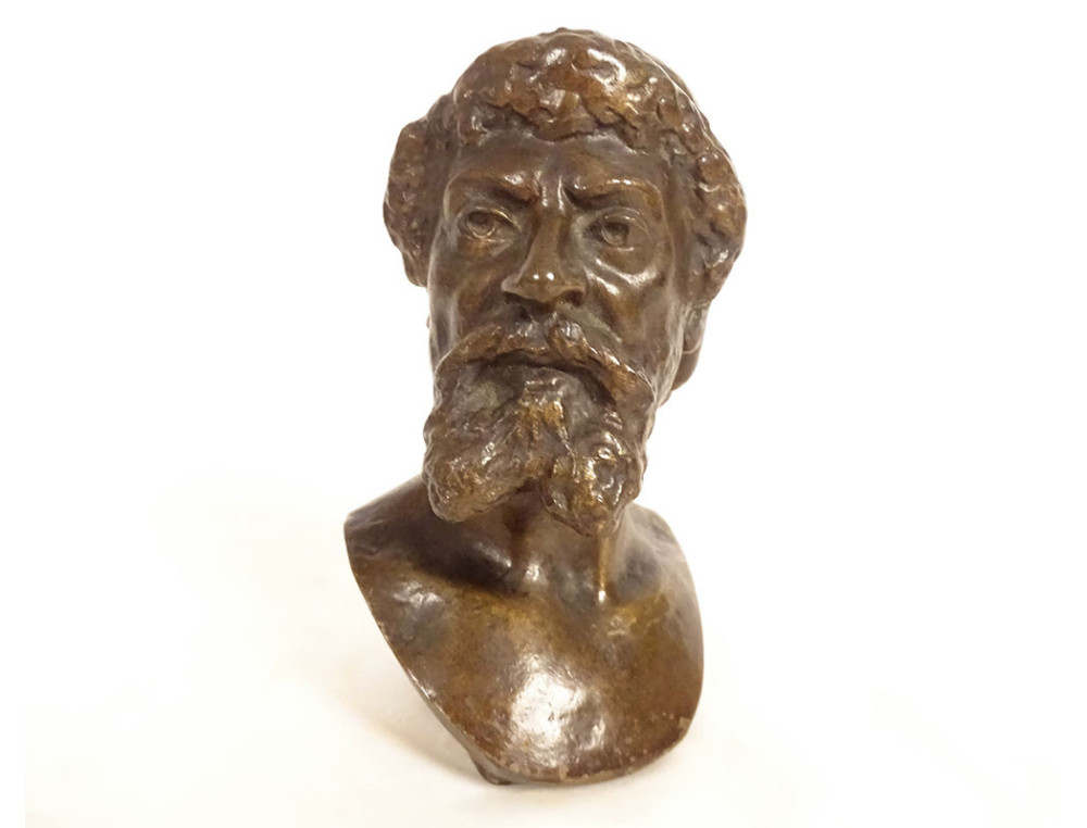 Bronze sculpture with a golden patina representing the bust of Michelangelo Buonarroti, known as Michelangelo (1475-1564), the famous Italian Renaissance sculptor and painter, from the 19th century.