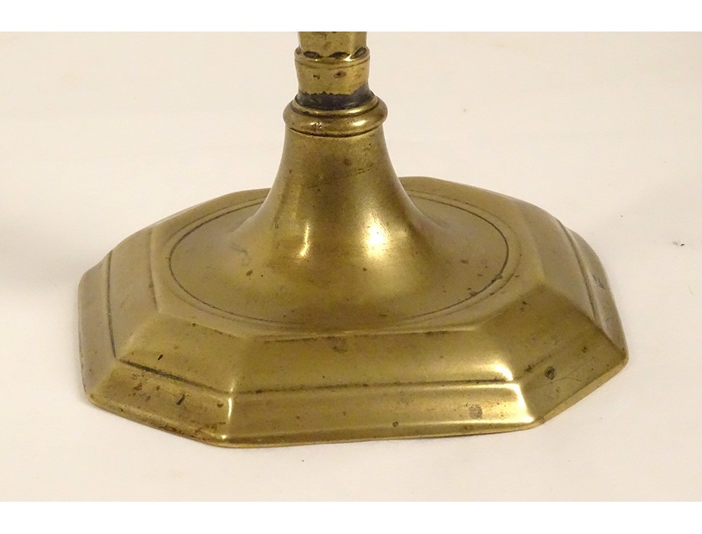 Louis XIV candlestick in bronze, straight socket on a baluster shaft, mounted on an octagonal base with cut sides in the corners, from the late 17th-early 18th century.