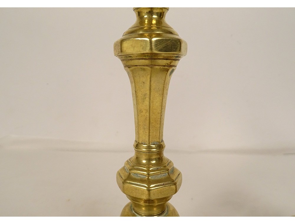 Pair of Louis XIV candlesticks in finely chiseled gilded bronze, octagonal socket, shaft and base, base with cut sides, hallmarked with the Crowned C*, from the late 17th-18th centuries.