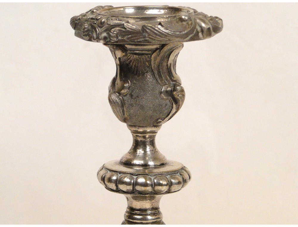 Pair of candlesticks Regency bronze silver chiselled decoration of flowers and foliage, XVIIIth century.