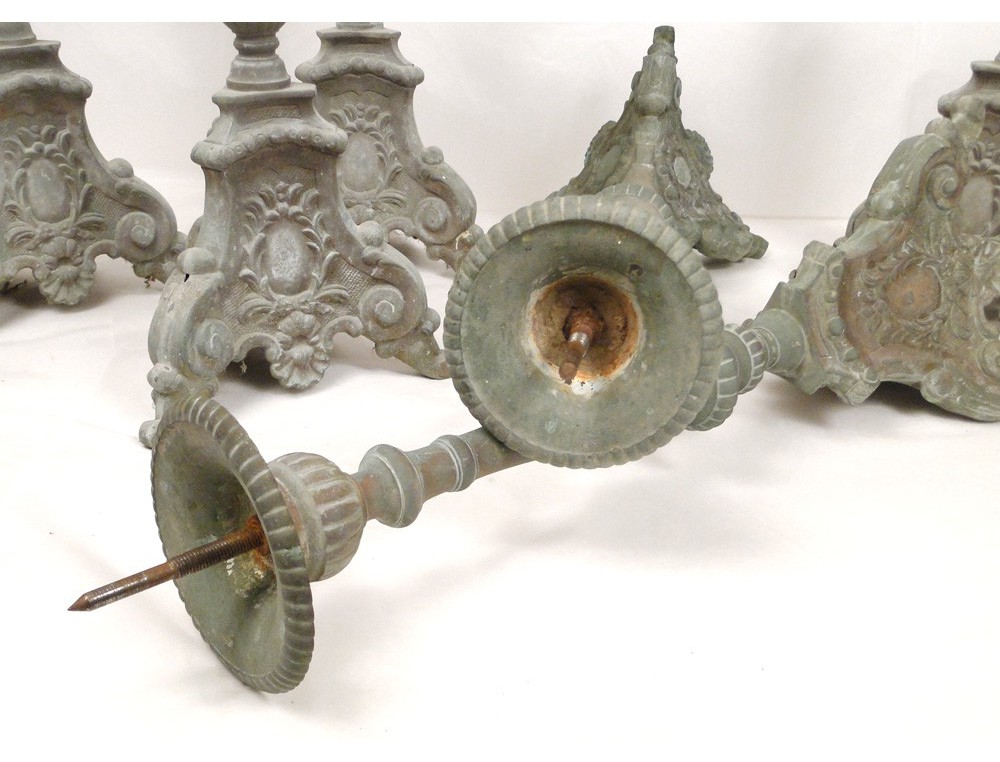 Rare Set of 6 Picnic candles in gilded bronze or silver, decorated with medallions, flowers and shells on the feet, then early nineteenth century.