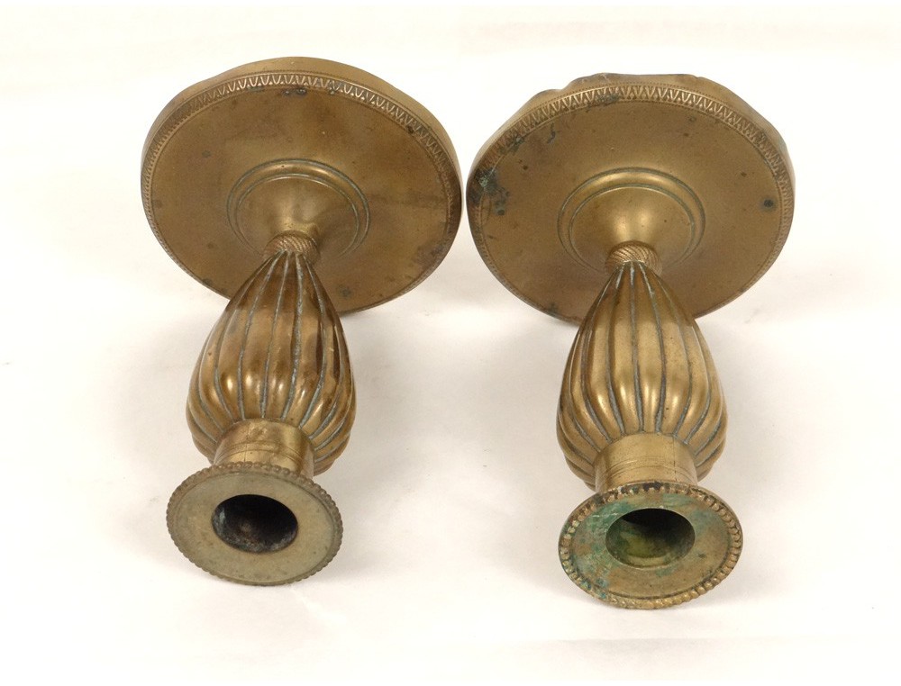 Very nice pair of candlesticks in gilt bronze candlesticks, Tapered fluted round foot, First Empire period early nineteenth century.