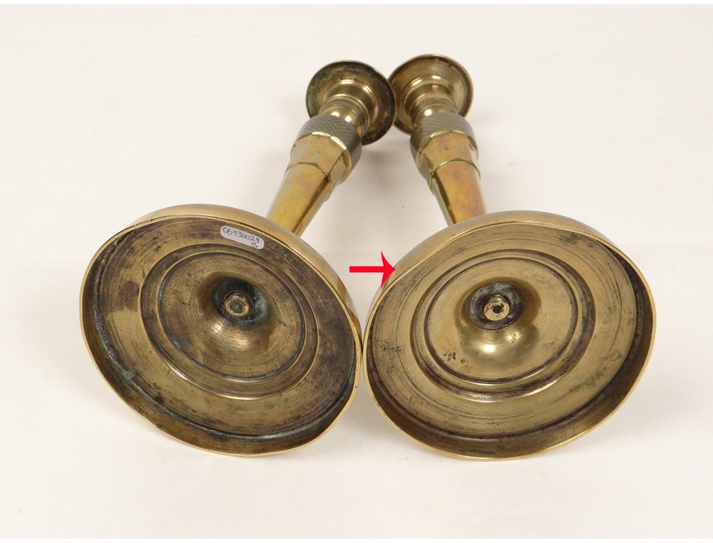 Very nice pair of candlesticks Directoire ormolu and guilloche * finely chopped, including decorated with a frieze of palmettes, period late eighteenth century.