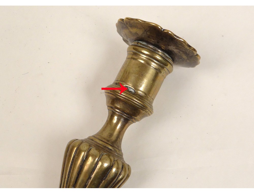 Very nice pair of candlesticks Regency finely chiseled silver bronze on column and base with curved moldings and contours, vintage early eighteenth century.