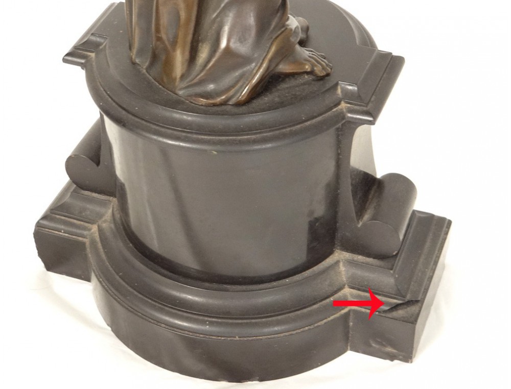 A note: small accidents on marble (see red arrows), micro-chips on the marble, missing a sconce over a fire, slight wear of time, see photos.