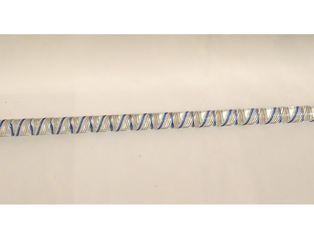 Conscript's cane in polychrome glass decorated with blue-white-red-green twisted nets, from the late 19th-early 20th century.