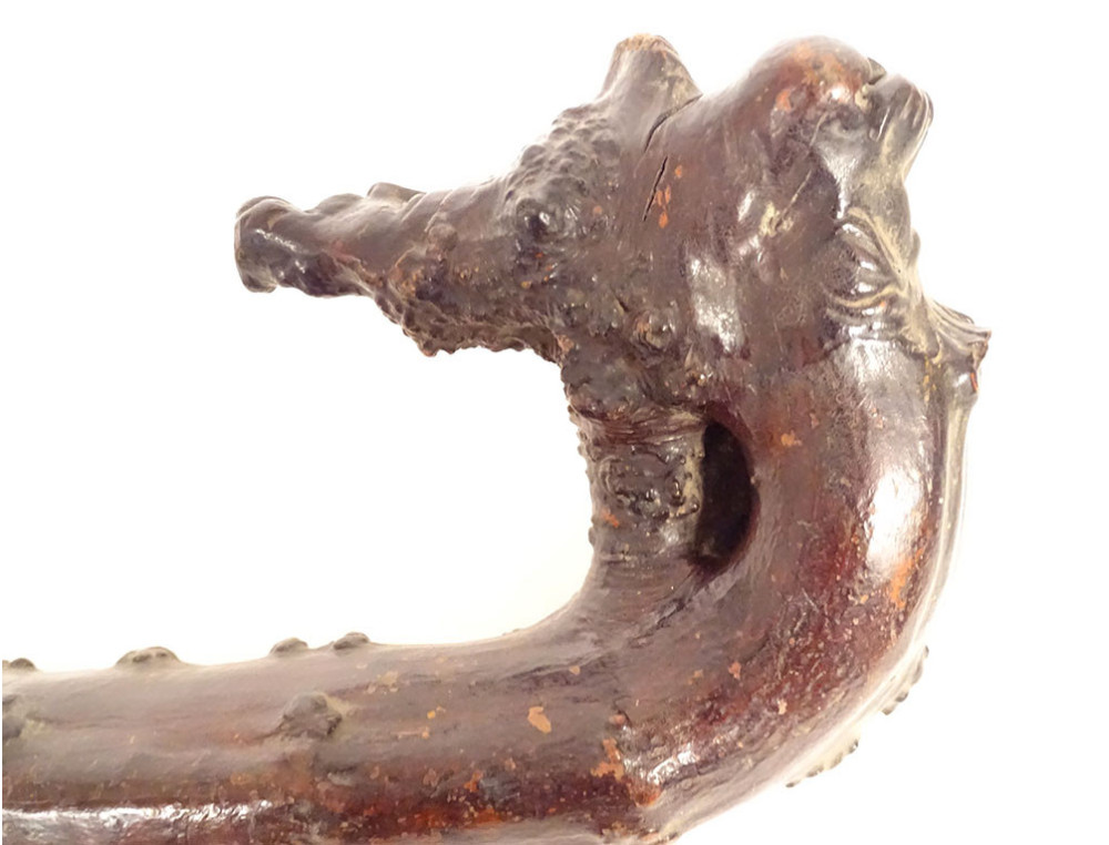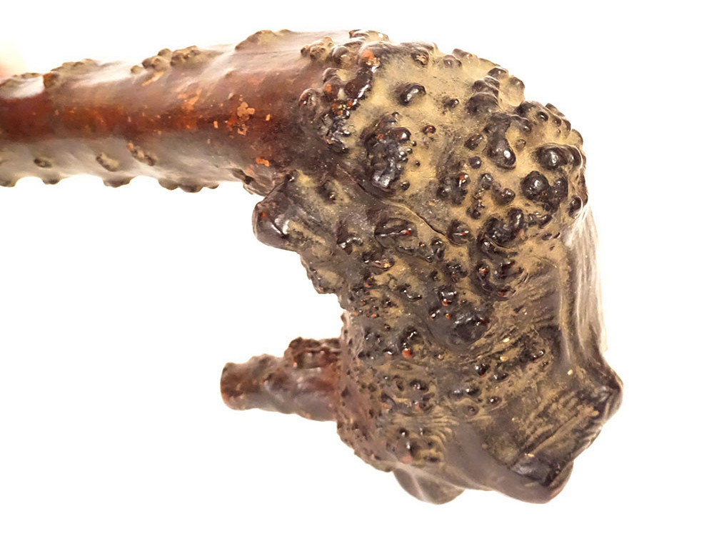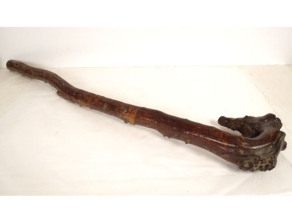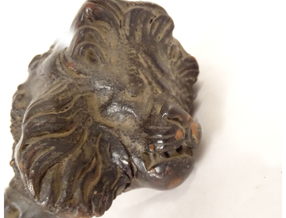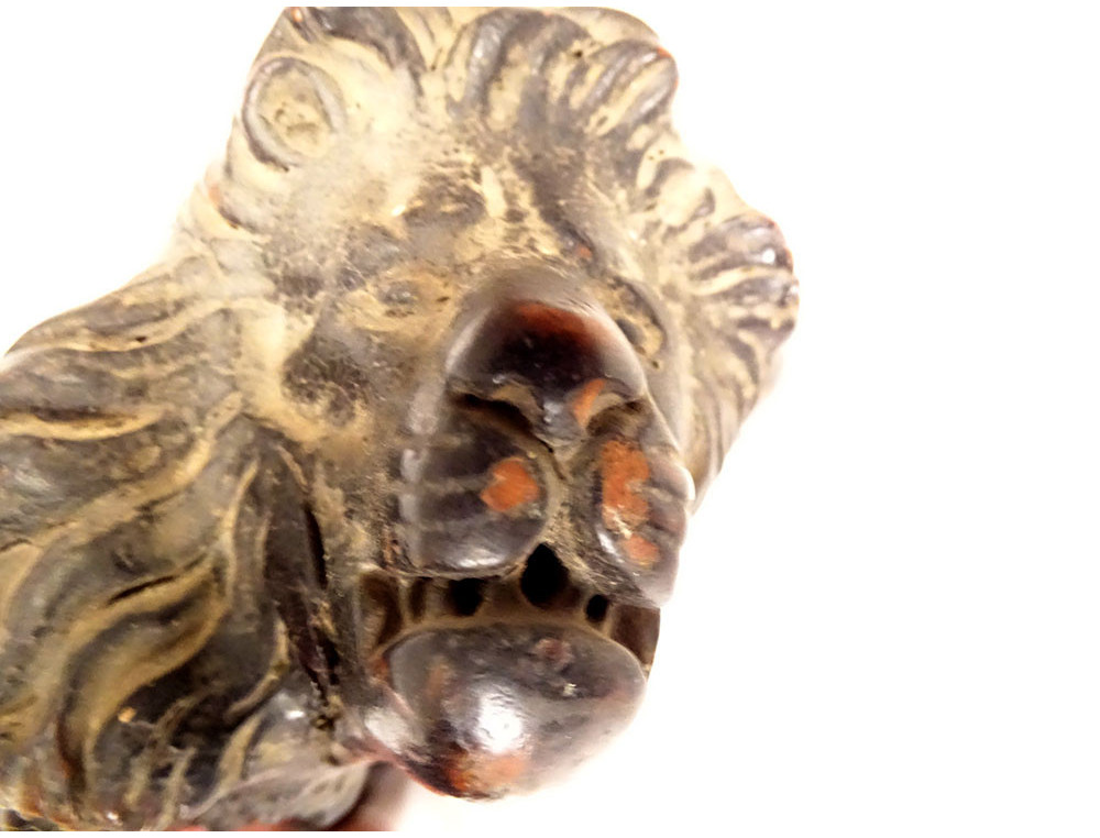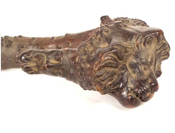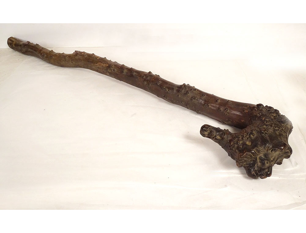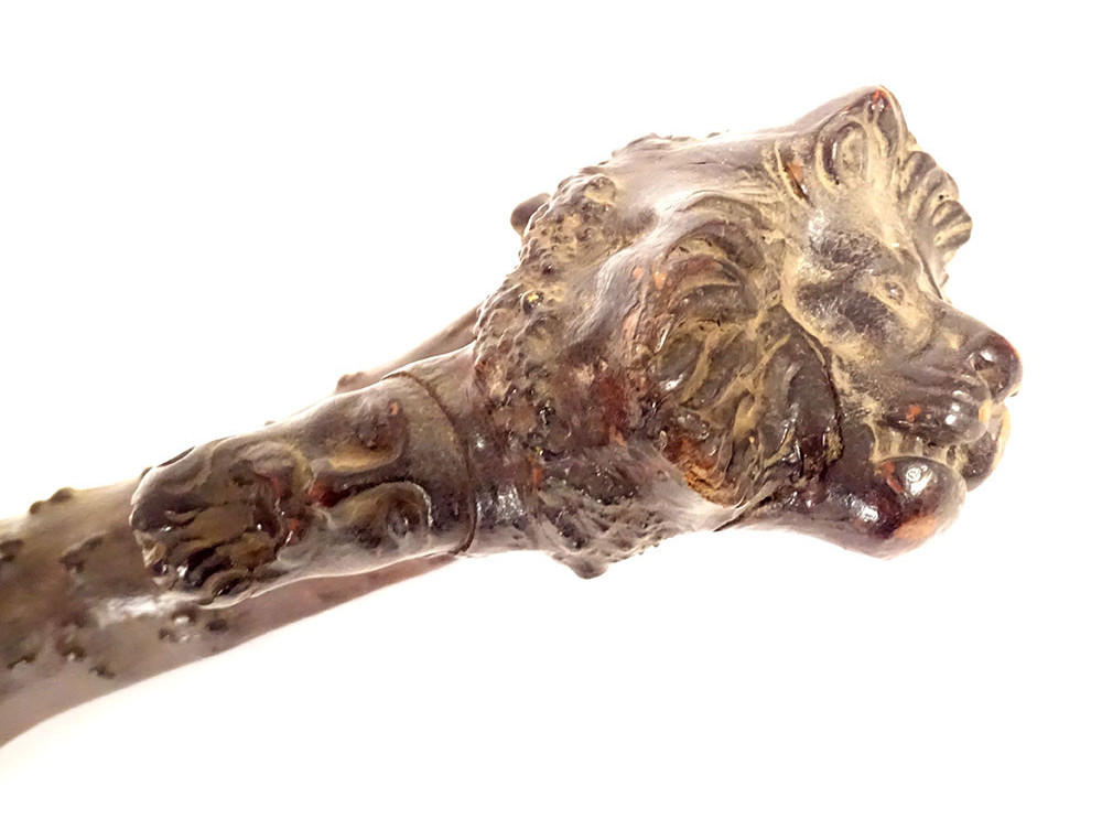 Antique carved wooden walking stick with lion head figure, Folk Art, 19th century