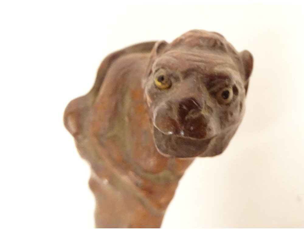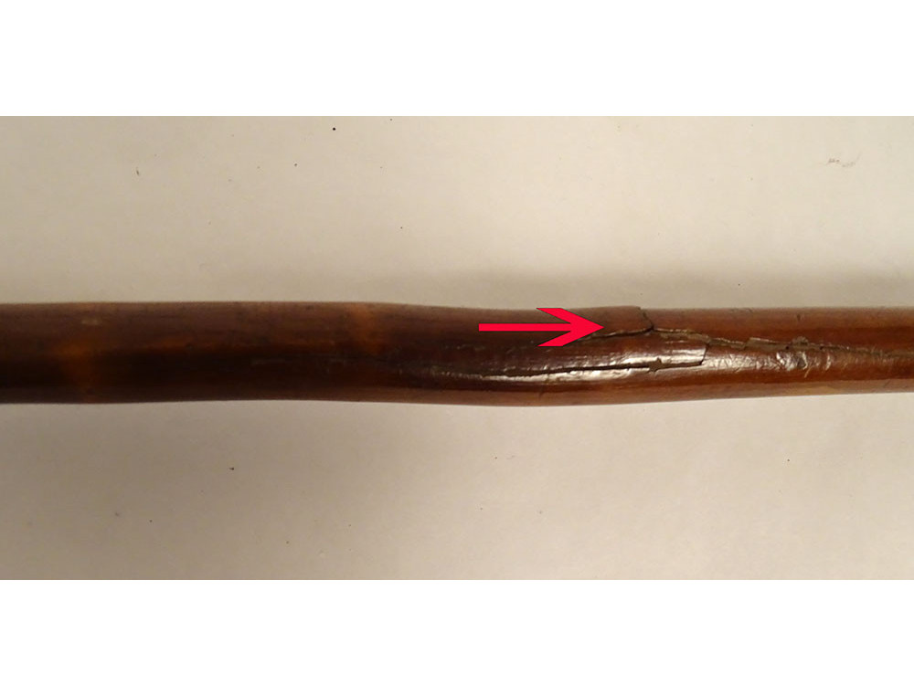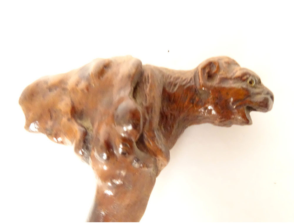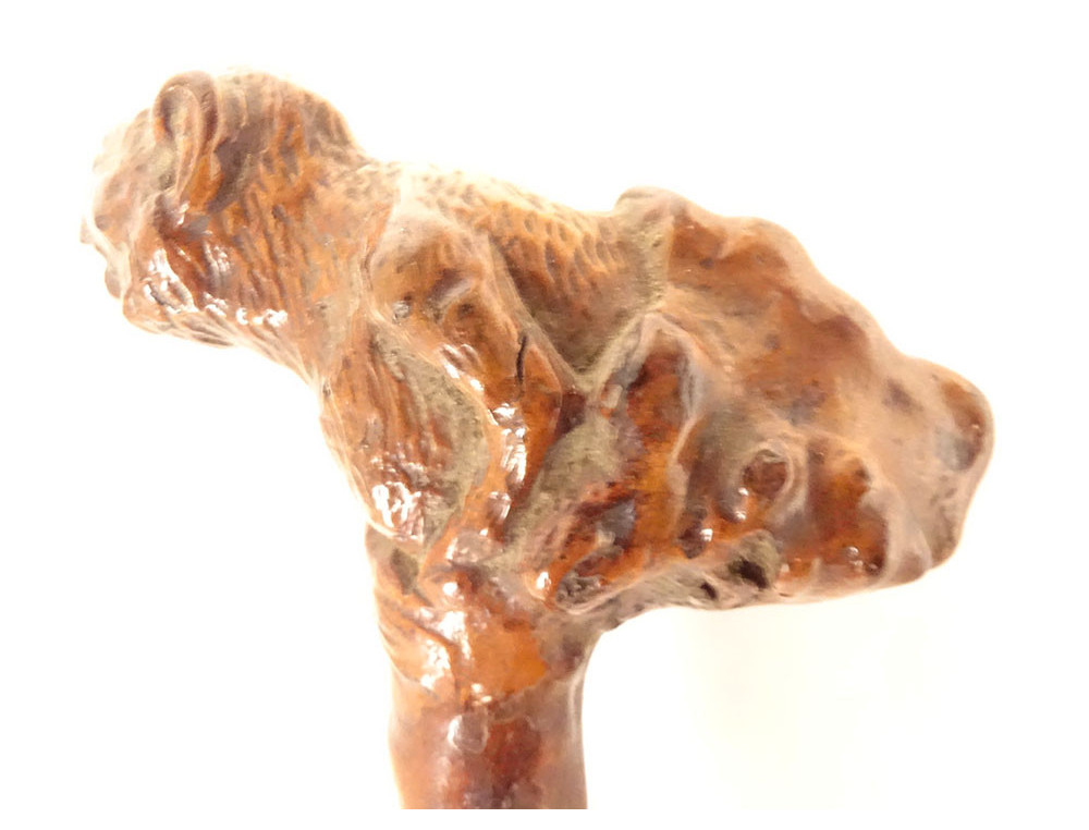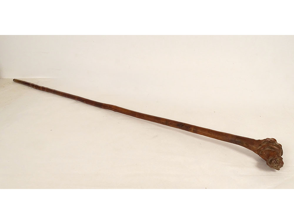 Antique carved wooden walking stick with lion head figure, Folk Art, 19th century