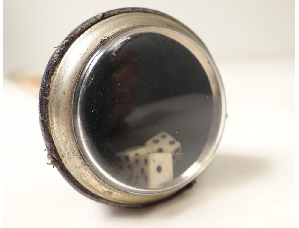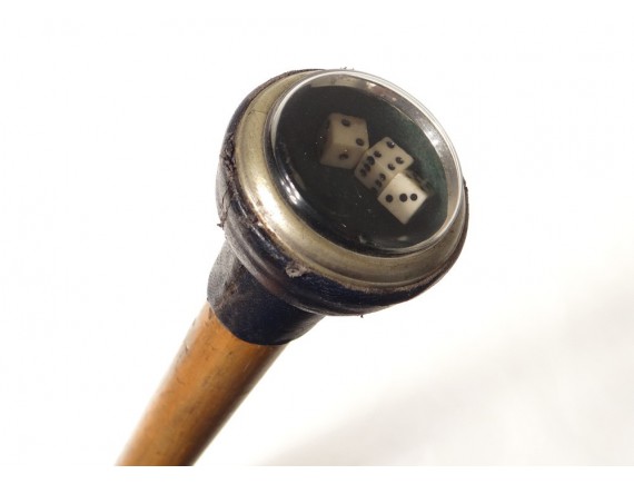 System Rod, "dis-cane called" wooden barrel, craps closed by a glass, leather and silver metal knob, the dice are rolled by hitting the cane on the floor, period late nineteenth-early twentieth centuries.