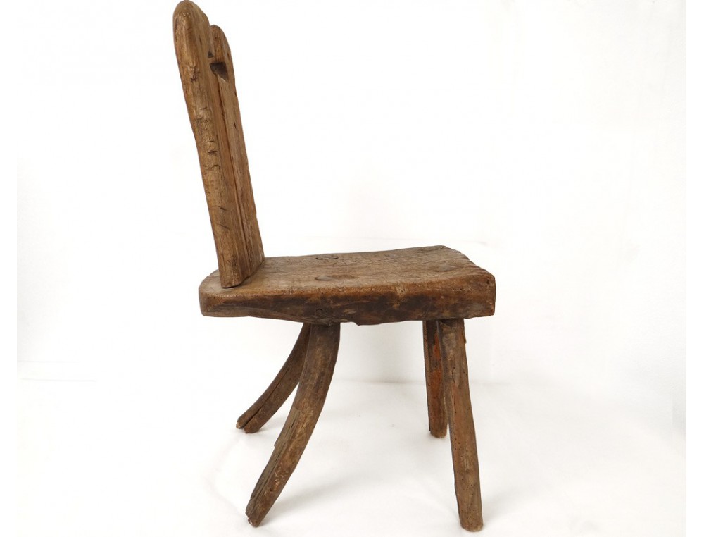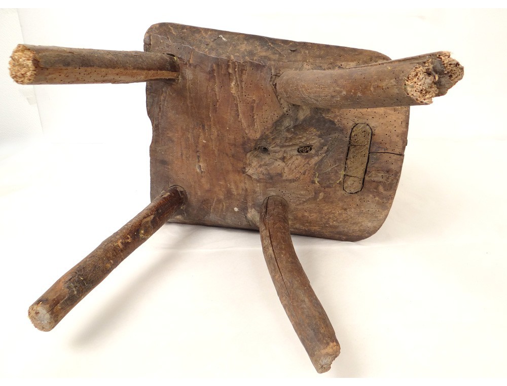 Very nice and rare rustic wooden stool, work Popular Art, XIXth century.
