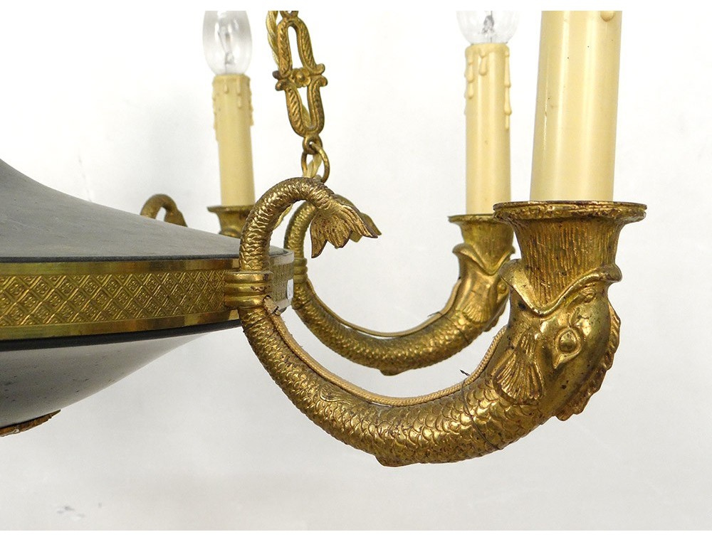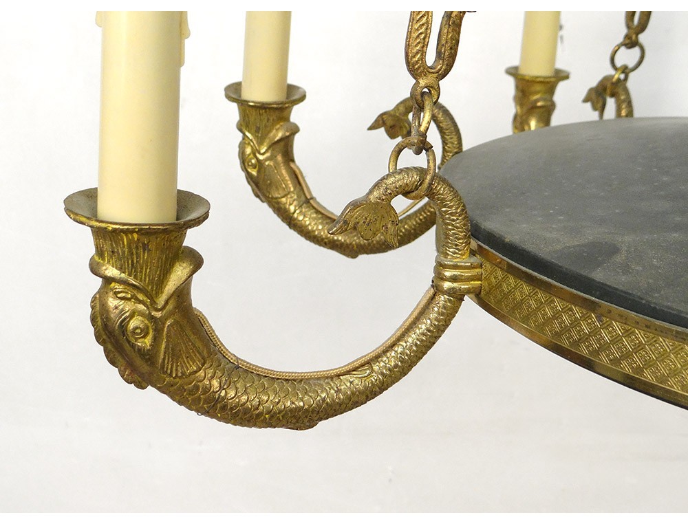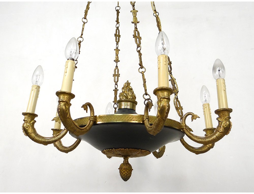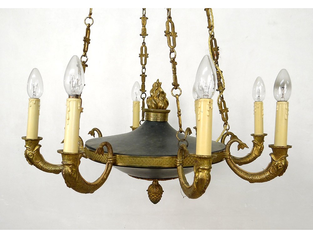 Empire chandelier 8 lights gilt bronze dolphins palmettes early twentieth century