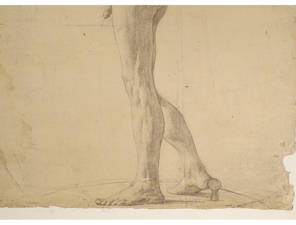 Naked man academy study pencil drawing signed Romieu XIXth century