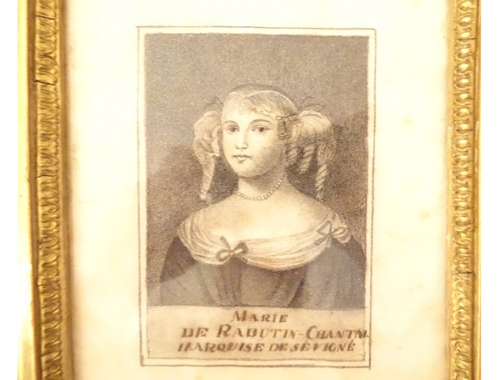 These drawings are in good condition as are the frames. These drawings were made from the engravings present in the works "Lettres de Madame de Sévigné", notably in the 1806 edition (engraved by PF Tardieu).