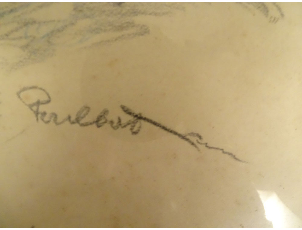 This drawing is in good condition. Signed and annotated, see photos. It is under glass.